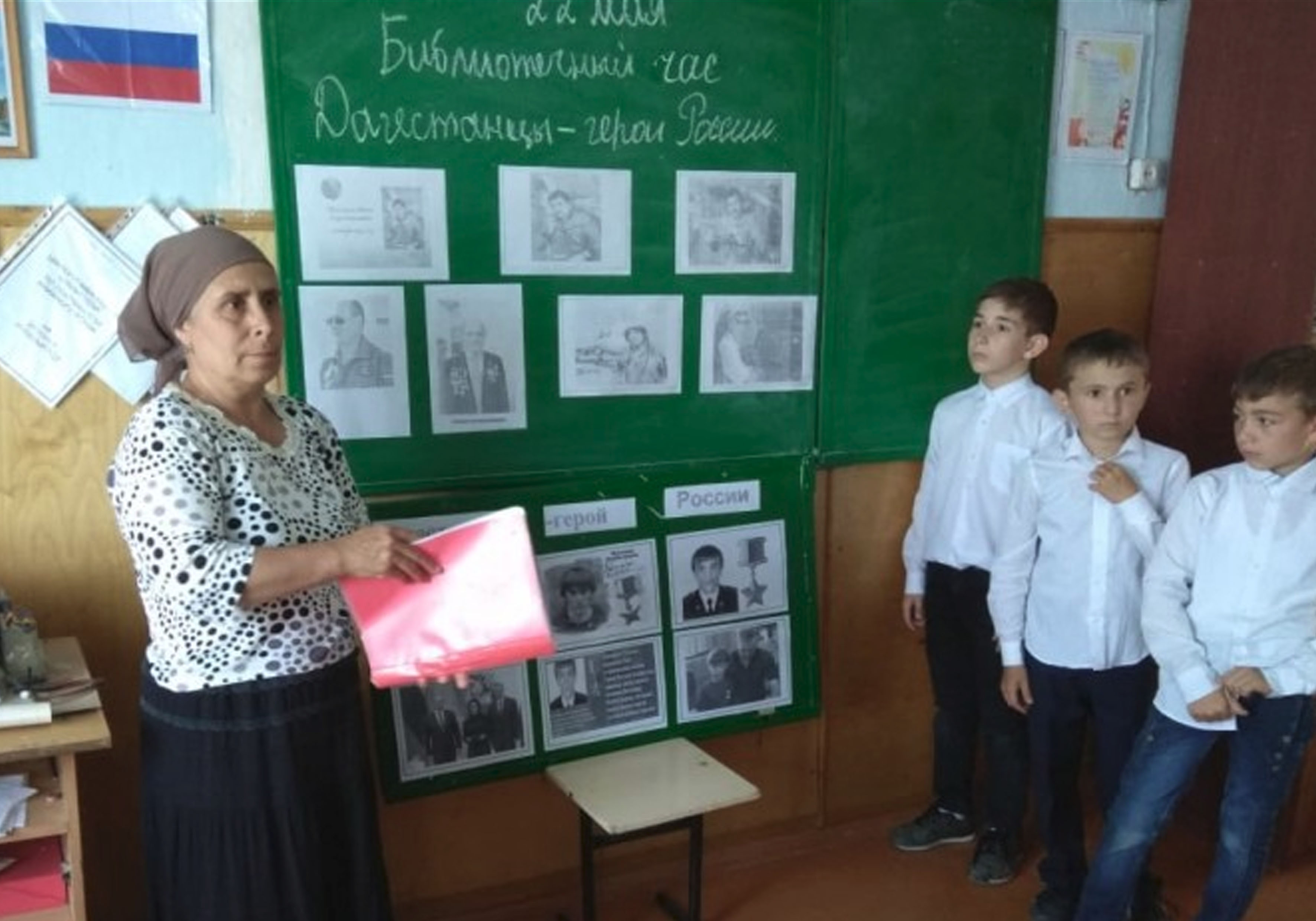 22 мая прошел библиотечный час о дагестанцах - Героях России. Школьный библиотекарь З. Исаева подготовила доклад о героях-дагестанцах: Магомеде Нурбагандове, Магомеде Толбоеве, Мусе Манарове. Рассказала о подвигах, которые они совершили, о званиях и наградах. Ученики с большим интересом слушали доклад и активно включились в беседу о мужестве и чести.