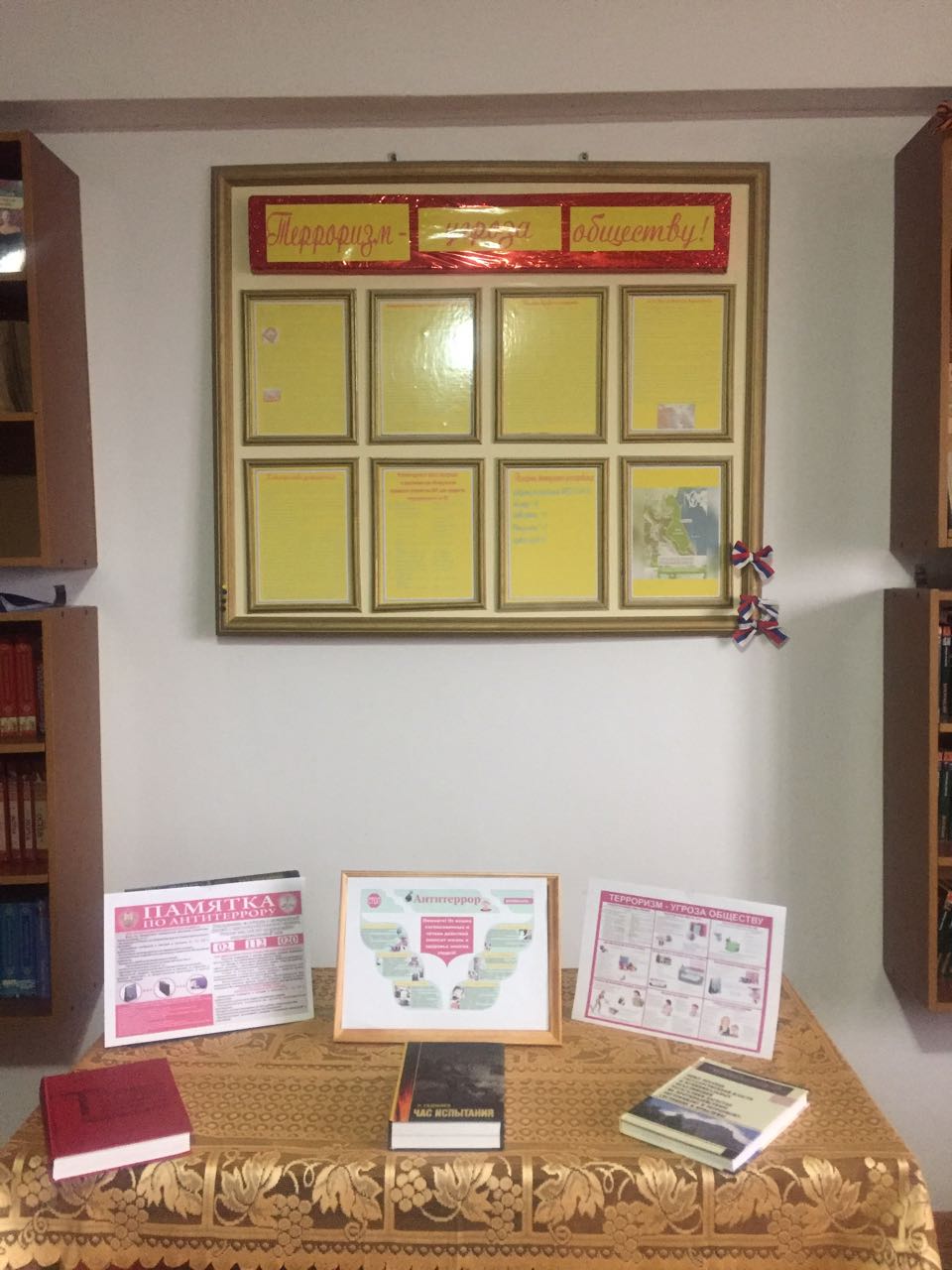 Было дано определение понятий "экстремизм" и "терроризм", а стенд "Антитеррор" знакомил юных читателей с правилами поведения наглядно.