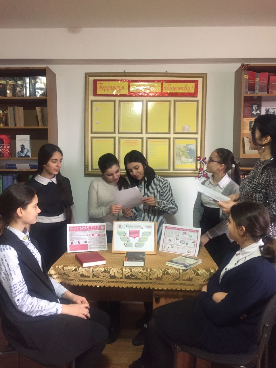 Как не стать жертвой теракта, об основных правилах поведения в условиях угрозы террористических актов, о проявлении осмотрительности и гражданской бдительности шла речь в ходе часа правовой информации "Антитеррор» в детском читальном зале централизованной библиотеки Кизилюртовского района 27 февраля.