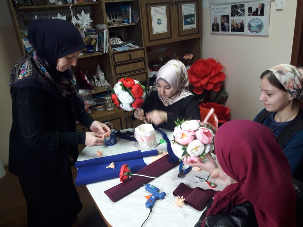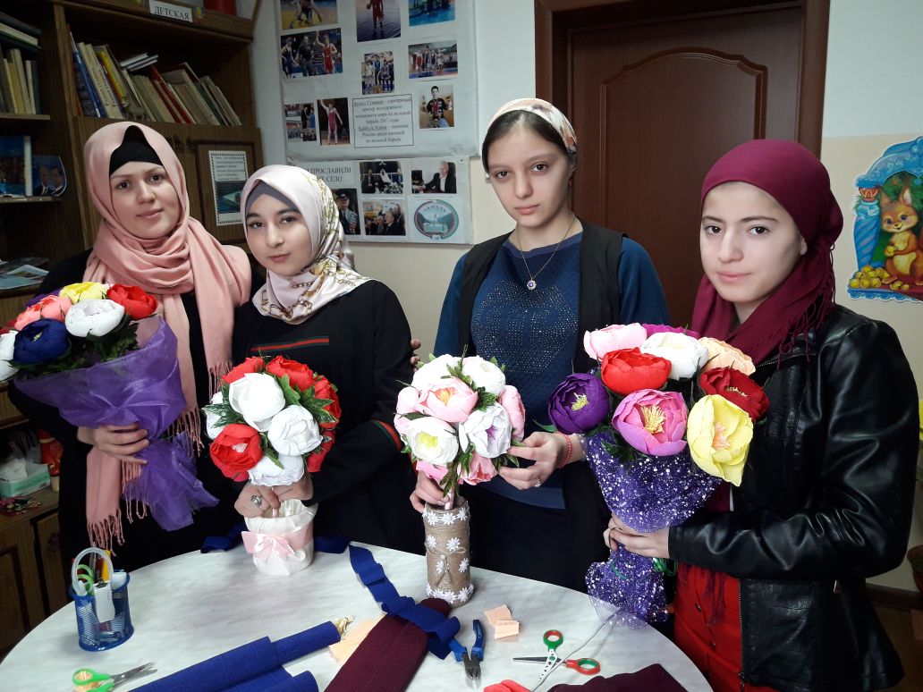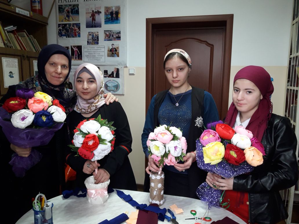 7 марта в библиотеке селения Акнада гостей учили создавать красивые букеты из цветов.