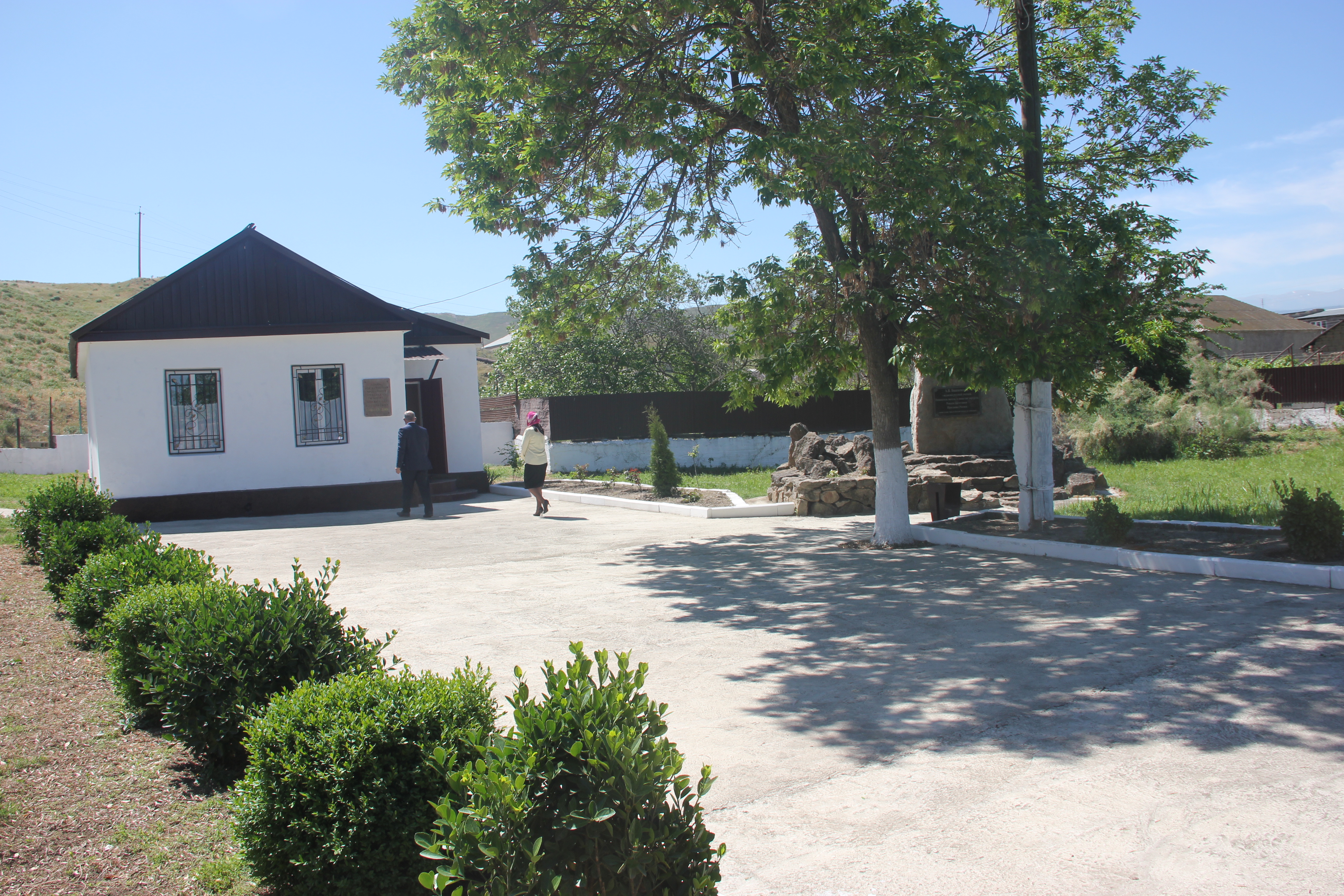 Во дворе красиво и ухоженно, всюду аккуратно посажены кустарники, а в центре двора сооружен памятник великому светилу отечественной медицины и земляку нижнечирюртовцев.