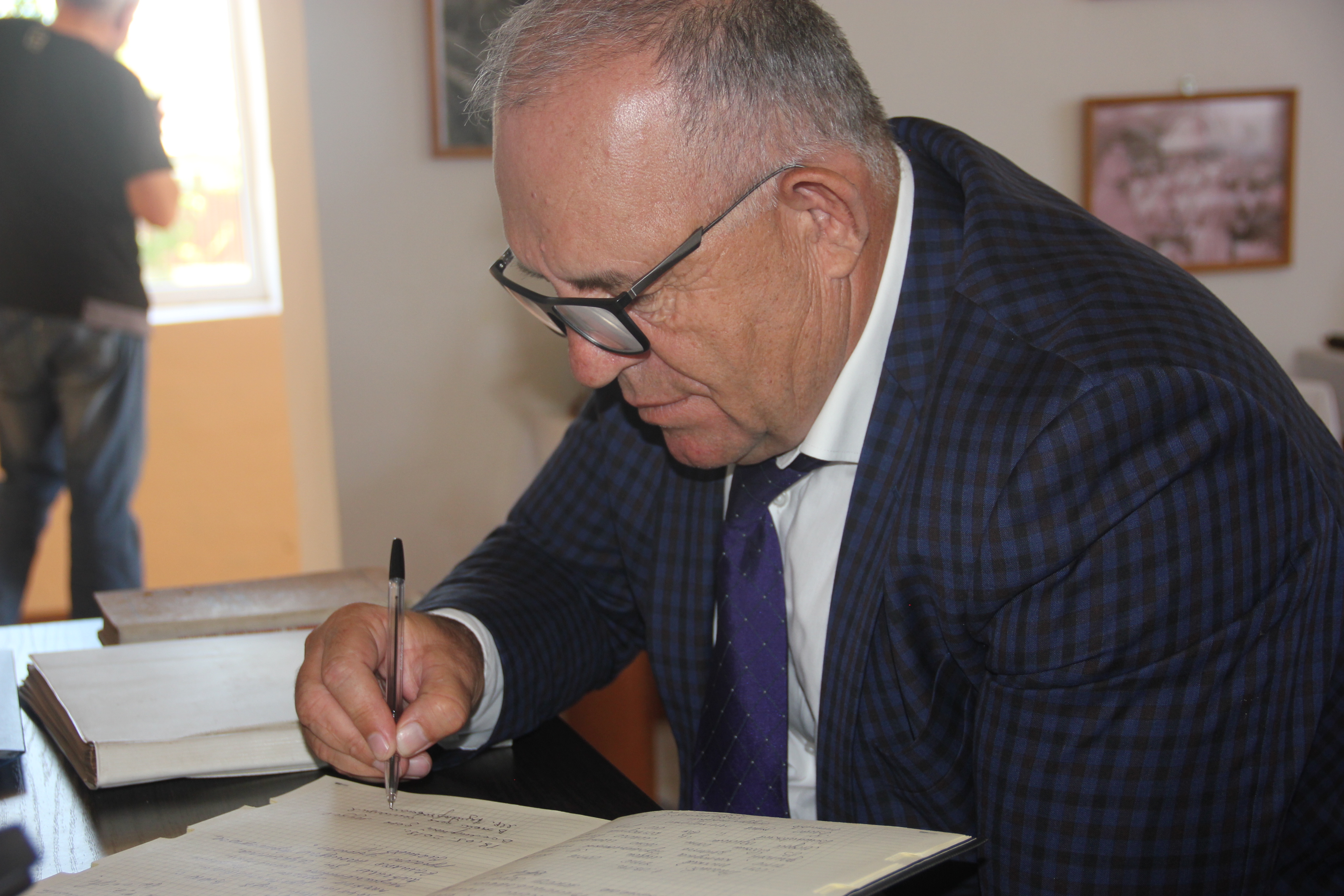 Сегодня заместитель главы администрации района Ибрагим Муталибов оставил и свою запись в Книге отзывов. Ибрагим Исаевич писал долго, красивым аккуратным почерком, как бы продолжая историю Дома – музея имени Вишневского.