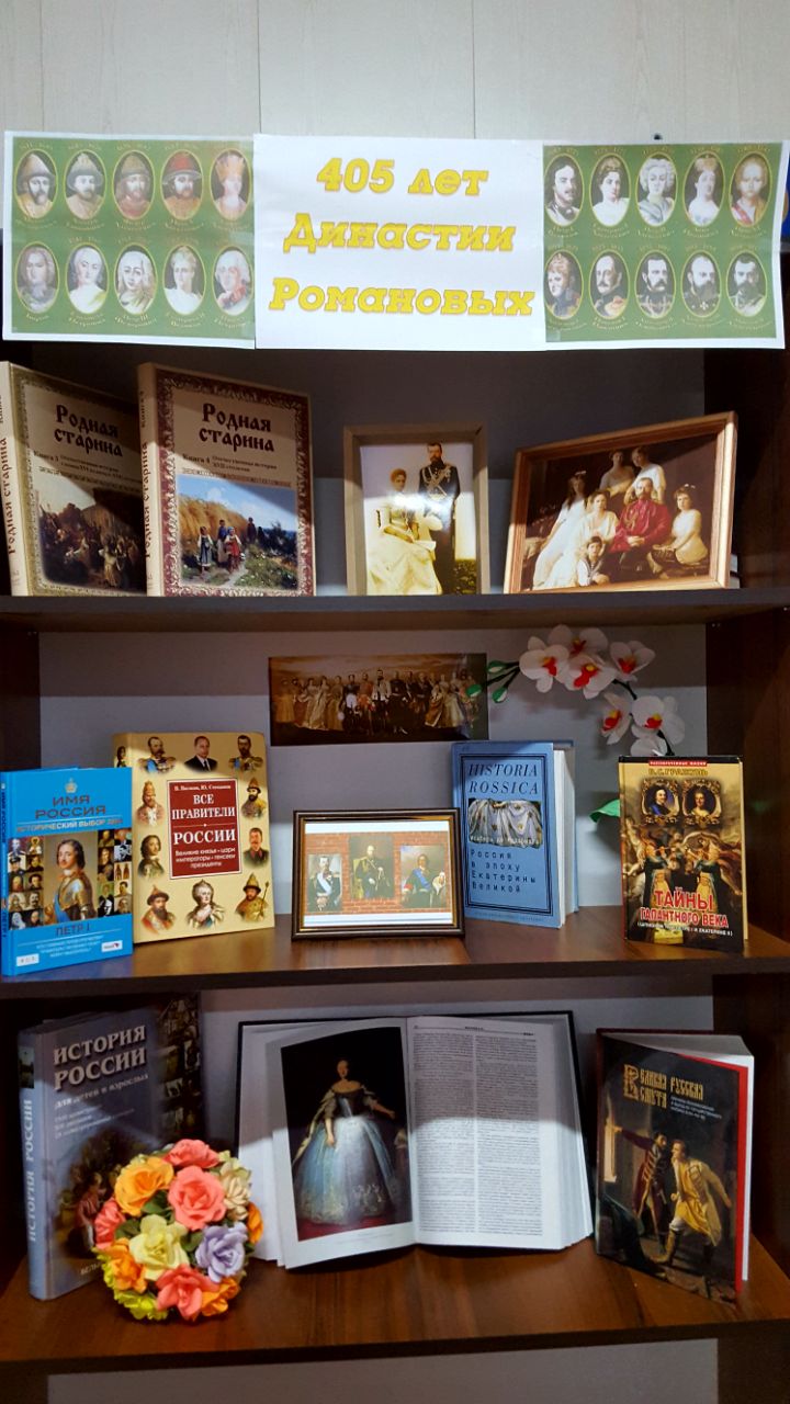 27 февраля в селении Нижний Чирюрт заведующая местной библиотекой Джамиля Сурхаева оформила книжную выставку, посвященную знаменательной дате – 405 - летию династии Романовых, которое отмечается в 2018 году.