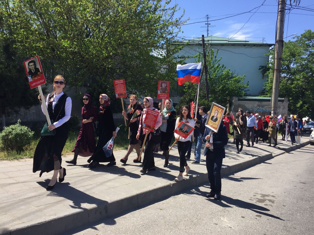 В столице Дагестана к праздничному митингу в честь Дня Победы присоединились делегации со всей республики. Бессмертный полк прошагал от площади Ленина по проспекту Расула Гамзатова до улицы Леваневского и завершил свое шествие в сквере имени Сулеймана Стальского. Здесь на площадке перед Аварским театром состоялся праздничный концерт.