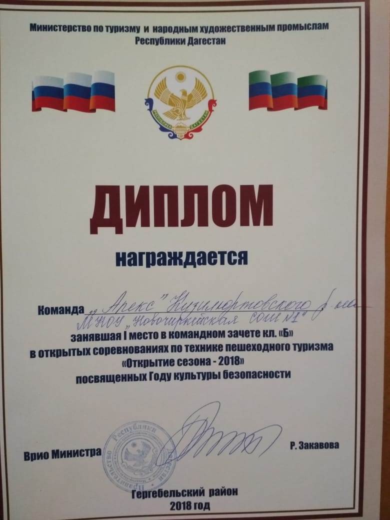 А на третий день, в конкурсе поваров и художественной самодеятельности учащиеся из Нового Чиркея никому не дали шансов взять I место. В итоге, после 9 состязательных этапов, команда из Новочиркейской СОШ №1 стала победителем открытых соревнований по технике пешеходного туризма «Открытие сезона-2018» и награждена кубком, медалями и почетными грамотами.
