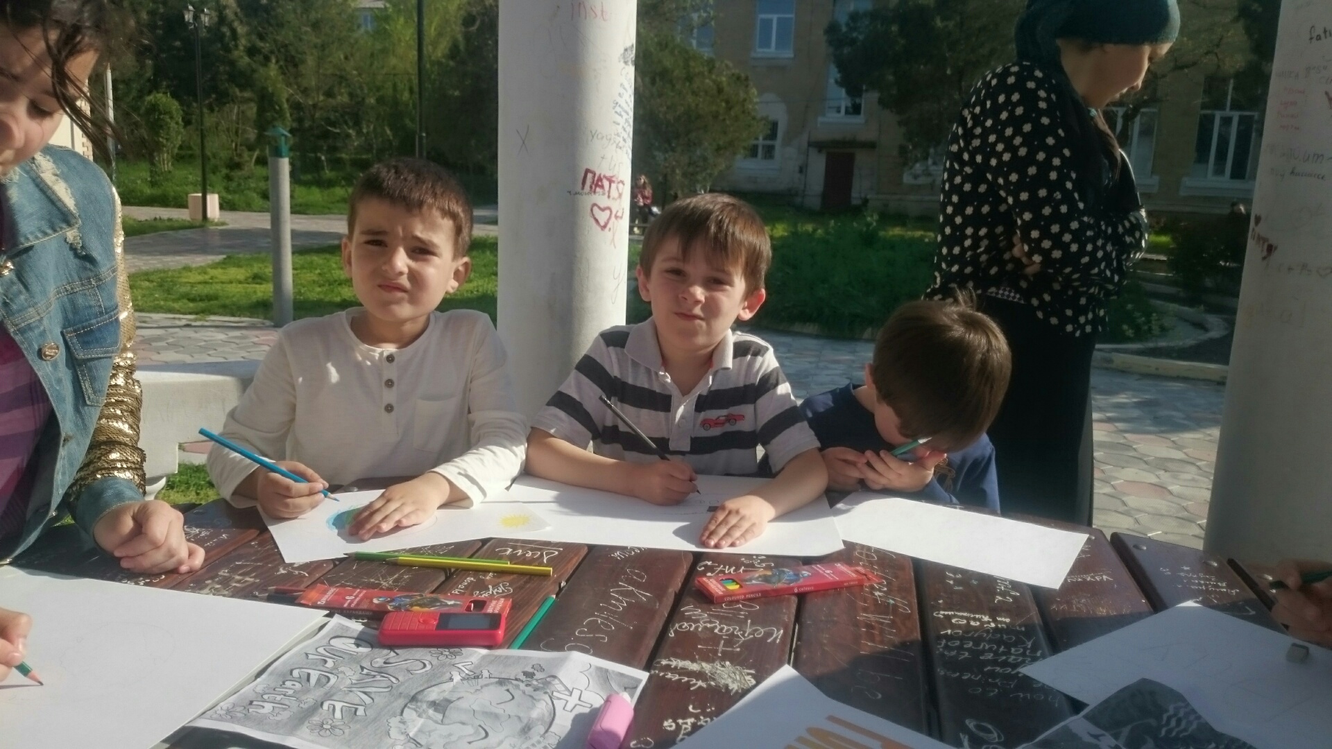 В 15: 00 началась регистрация участников. Волонтеры отметили, что желающих поучаствовать в конкурсах оказалось более 60 человек. В атмосфере радости и веселья дети рисовали планеты, глобусы, леса, поля, все то, что в их понимании олицетворяло землю.