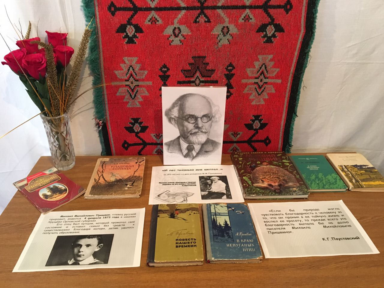 16 февраля в Кульзебской сельской библиотеке была оформлена книжная выставка- обзор «И лес тихонько мне шептал», посвященная 145 - летию писателя М.М.Пришвина.