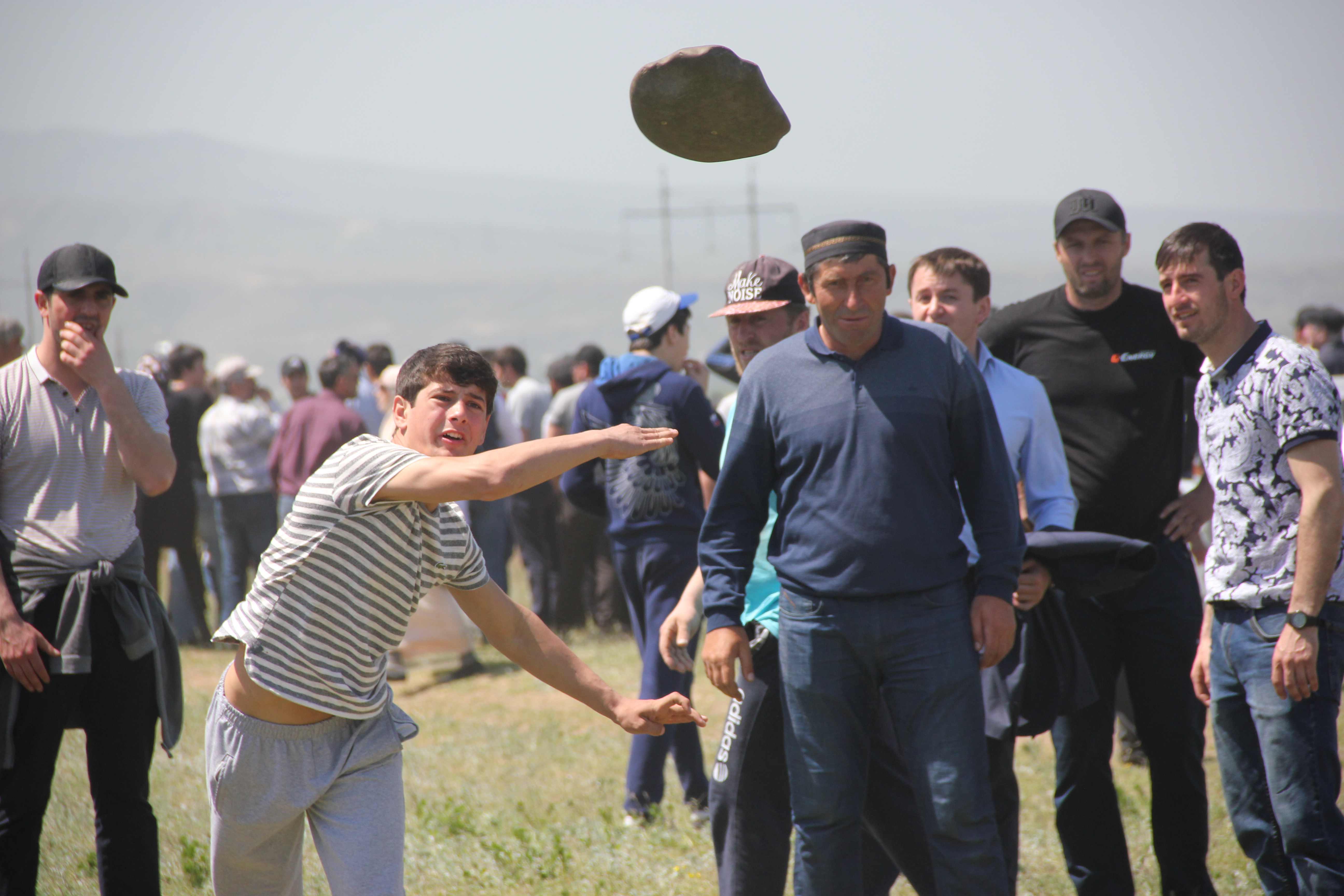 Дальше всех восьмикилограммовый камень метнул А. Алиев из Цумадинского района, за ним выстроились представитель Учкента П. Магомедов и С. Шахидов из Кироваула.