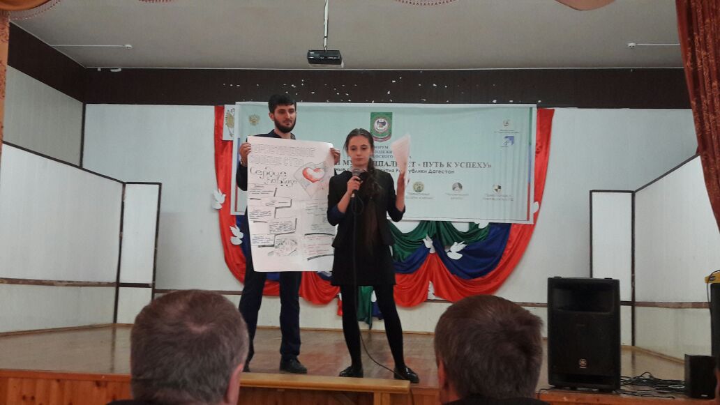 Среди детей лидирующие позиции забрал проект «Свежие витамины каждый день» (руководитель Магомед Лабазанов), на второе место вышло туристическое сообщество «Сердце Кавказа» (Шарузат Абасова) и третье место за проект присудили «Иссису – родник здоровья» Зухры Алимирзаевой.