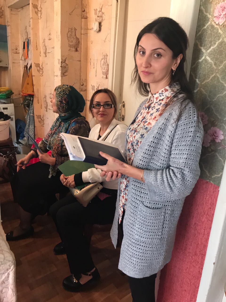 По месту регистрации и проживания 8 семей действующих, ликвидированных или осужденных участников НВФ выехали ответственный секретарь комиссии по делам несовершеннолетних и защите их прав Меседу Амирова, инспектор полиции по делам несовершеннолетних Али Мурадисов, специалист отдела опеки, попечительства и по делам несовершеннолетних Зарбика Магомедова, главный специалист отдела культуры, физической культуры и спорта, туризма и молодежной политики администрации Кизилюртовского района Магомедрасул Абдулахидов и инспектор по поддержке безработных граждан, испытывающих трудности в поиске работы Центра занятости населения района, Роза Меджидова.