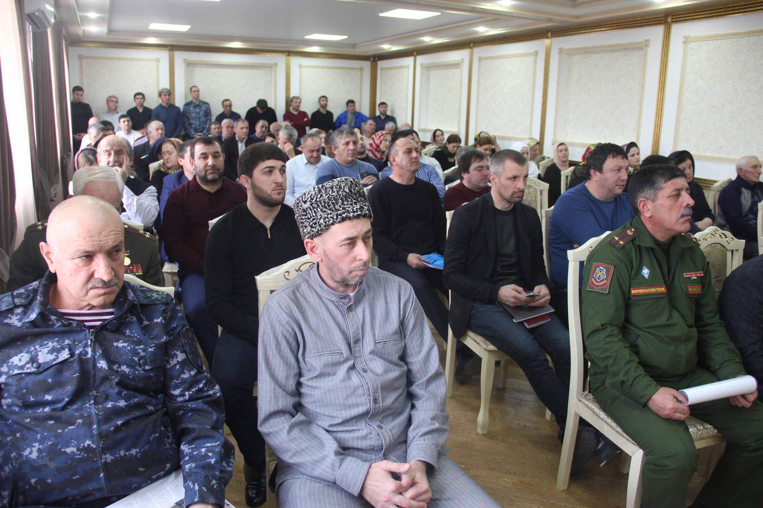В президиуме - Кизилюртовский межрайонный прокурор, старший советник юстиции Башир Билалов, начальник межмуниципального отдела МВД России «Кизилюртовский», полковник полиции Шейхмагомед Шейхмагомедов, начальник отделения №3 ФСБ России по городу Хасавюрту Сайпула Магомедов и председатель районного Собрания депутатов Абдулжалил Абдужанов.