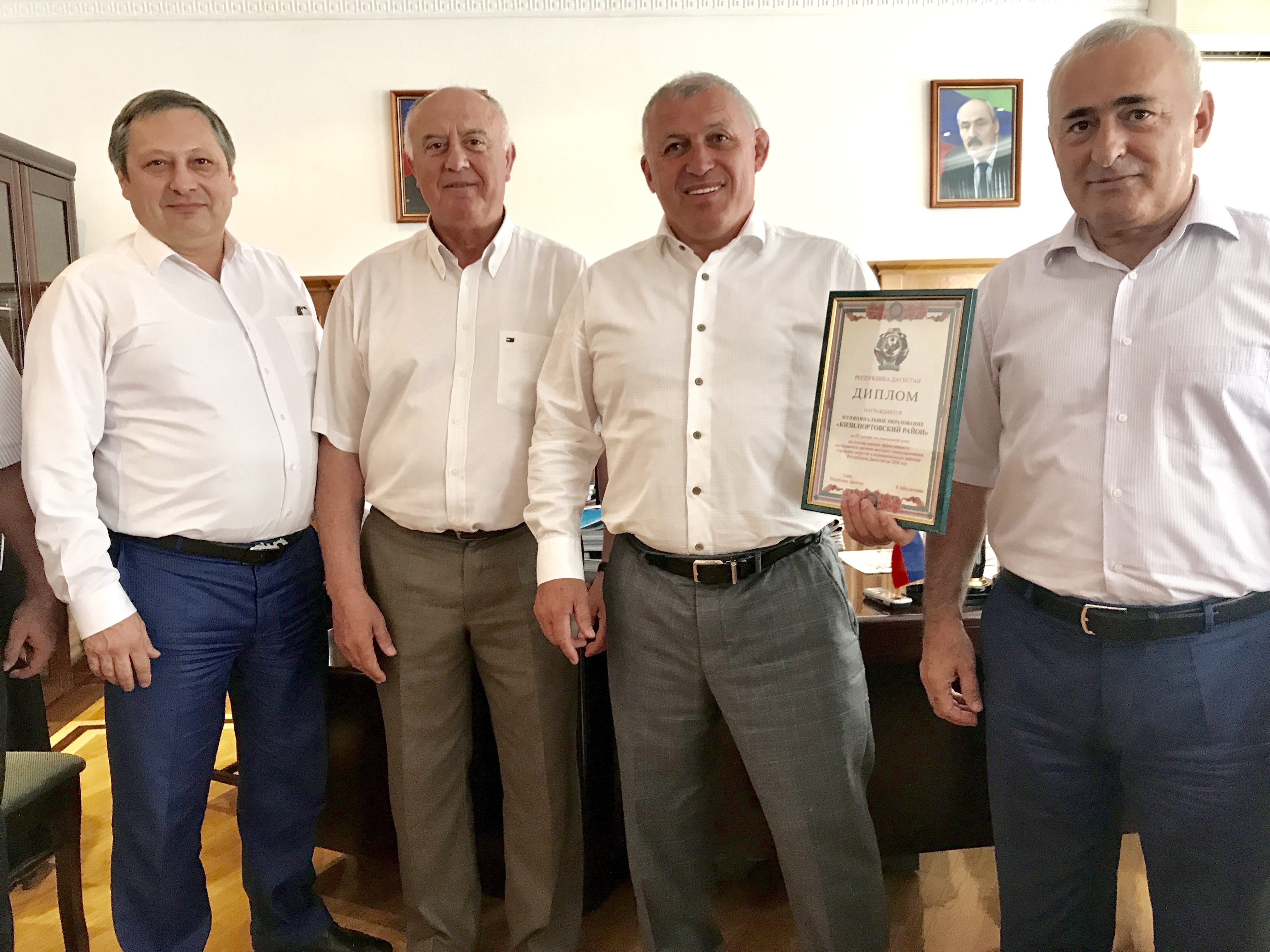 В администрации Кизилюртовского района 17 августа в торжественной обстановке и в присутствии многочисленных гостей - руководителей территориальных подразделений федеральных и республиканских ведомств, депутатов, глав сельских поселений - Полномочный представитель Главы РД в Центральном территориальном округе республики Шамиль Зайналов по поручению Главы РД вручил Диплом за 3 место главе Кизилюртовского района Магомеду Шабанову. Как уже сообщалось ранее в газете «ВКР» от 7 июля, по итогам оценки эффективности деятельности органов местного самоуправления городских округов и муниципальных районов Дагестана за 2016 год муниципальному образованию «Кизилюртовский район» присуждено третье место в равнинной зоне и выделен из республиканского бюджета поощрительный грант в сумме 1 млн 501тыс. рублей.