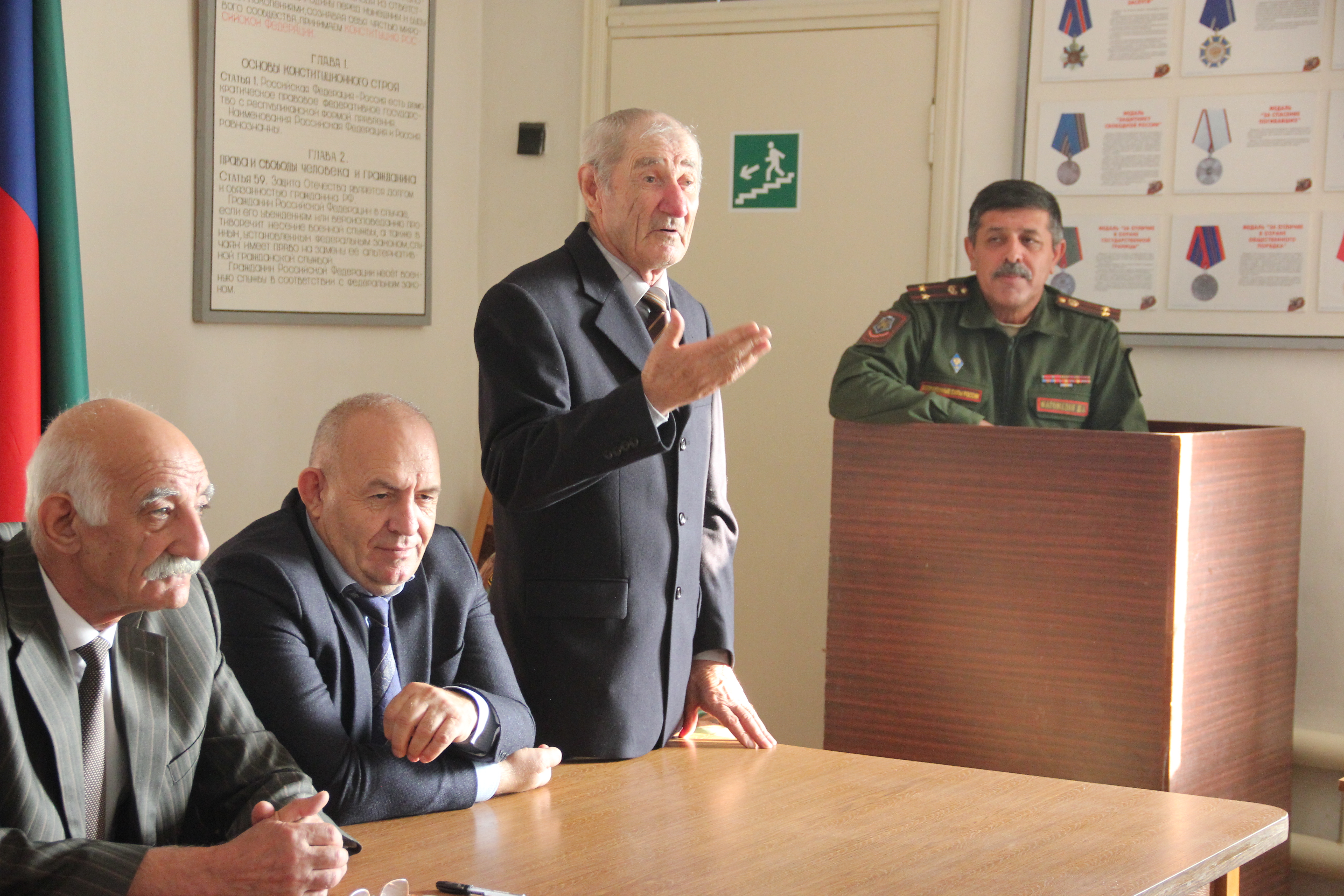 13 октября в отдел Военного комиссариата РД города Кизилюрта, Кизилюртовского и Кумторкалинского районов пригласили представителей администраций муниципальных образований и общественных организаций, ведущих патриотическое воспитание молодежи. В почетном президиуме заняли свои места первый заместитель главы администрации города Кизилюрта Седретдин Джафаров; заместитель главы администрации Кизилюртовского района Ибрагим Муталибов; военком города и района полковник Шейхсаид Магомедов; председатель Общественной палаты г. Кизилюрта Гасан Омаров; участники боевых действий на территории Демократической Республики Афганистан - председатель районного Совета ветеранов Великой Отечественной войны, труда, Вооружённых Сил и правоохранительных органов, полковник в отставке, кавалер двух орденов Мужества Шарудин Магомедалиев, председатель объединенного Совета воинов - афганцев Рамазан Алиев, полковник медицинской службы запаса Амиргамза Сулейманов и сержант запаса Герейхан Герейханов. Военком города Кизилюрта, Кизилюртовского и Кумторкалинского районов Шейхсаид Магомедов на правах хозяина торжественного собрания первым взял слово и поделился с гостями планами своего коллектива на ближайшее время. «Наш сбор приурочен к столетию со дня образования военных комиссариатов в рамках подготовки его празднования 8 апреля 2018 года», - сообщил он, напомнив, что восьмого апреля в России отмечают День сотрудников военных комиссариатов и что в этот день в 1918 году были учреждены волостные, уездные, губернские и окружные комиссариаты по военным делам – военкоматы. Из доклада Шейхсаида Магомедова следовало, что необходимым условием организации могучей армии было создание её военно-административных органов, ведающих военно-мобилизационной и учётно-призывной работой в соответствующих административно-территориальных образованиях. Декретом Совета Народных Комиссаров от 8 апреля 1918 года по всей стране была создана единая сеть местных органов военного управления – военных комиссариатов.