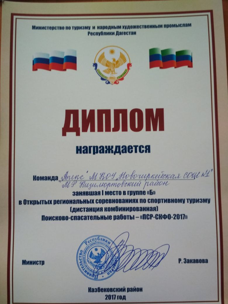 11 ноября прошла официальная церемония закрытия и награждения победителей открытого чемпионата Северо-Кавказского федерального округа по комбинированному туризму «Поисково-спасательные работы-2017», который, напомним, проходил с 7 по 11 ноября на территории Казбековского и Буйнакского районов.