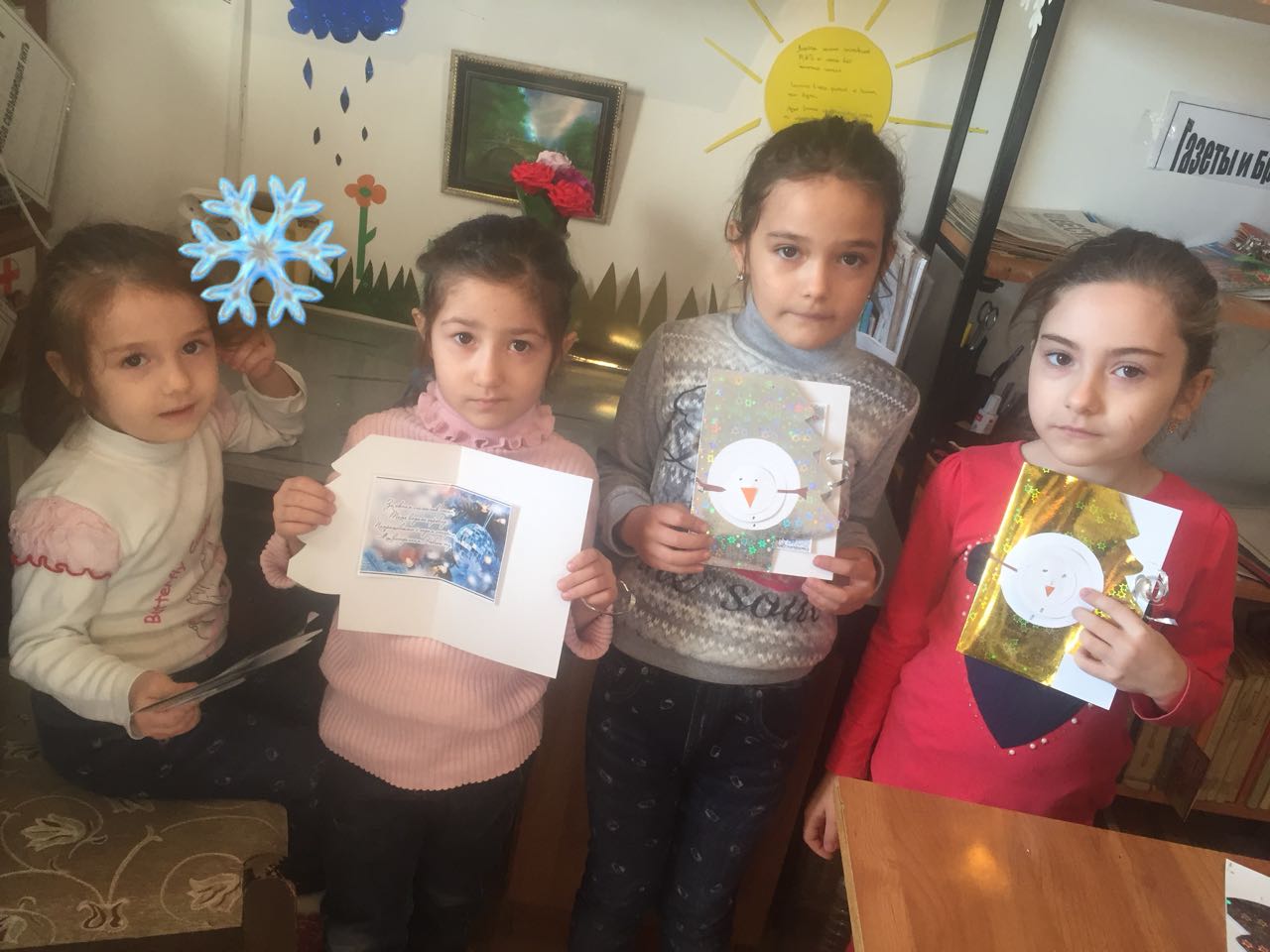 27 декабря в селение Миатли заведующая библиотекой Магомаева Саида провела мастер – класс для первоклассников «Новогодняя открытка».