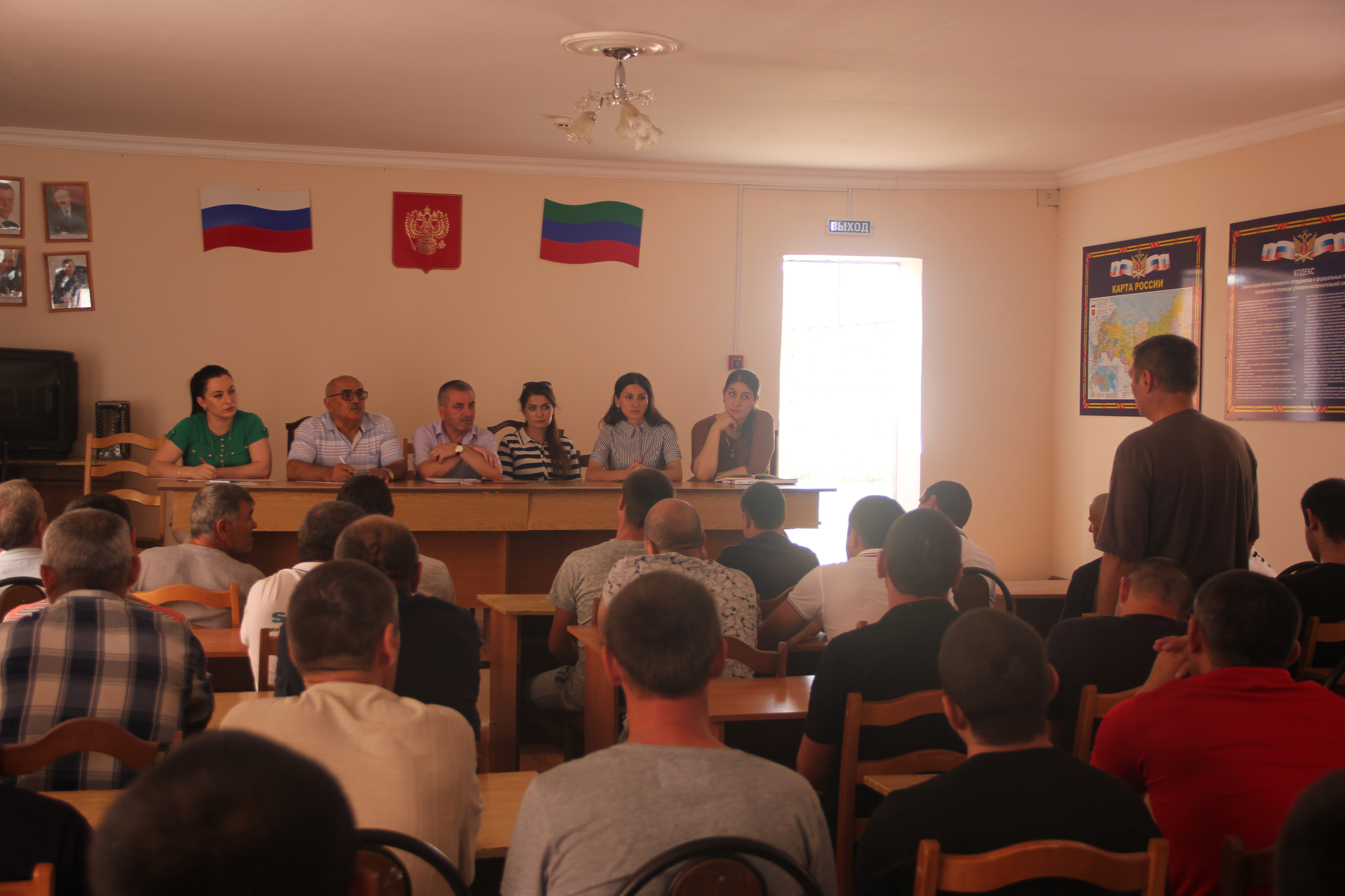 Заместитель главы администрации МР «Кизилюртовский район» по общественной безопасности, секретарь Антитеррористической комиссии района Гагарин Омаров, имам центральной мечети сел.Султанянгиюрт Расул Мусаев, специалист АТК района Сабина Рашидова, инспектор ОВМ МО МВД России «Кизилюртовский» Беркиханова Сакинат, психолог Управления образования района Шапиева Элиза, инспектор Центра занятости Кизилюртовского района Меджидова Роза и член правления Дагестанской региональной общественной организации «Поддержка курса Главы РД» Салимханов Юкрудин вместе с руководством и офицерским составом колонии провели беседу с осужденными.