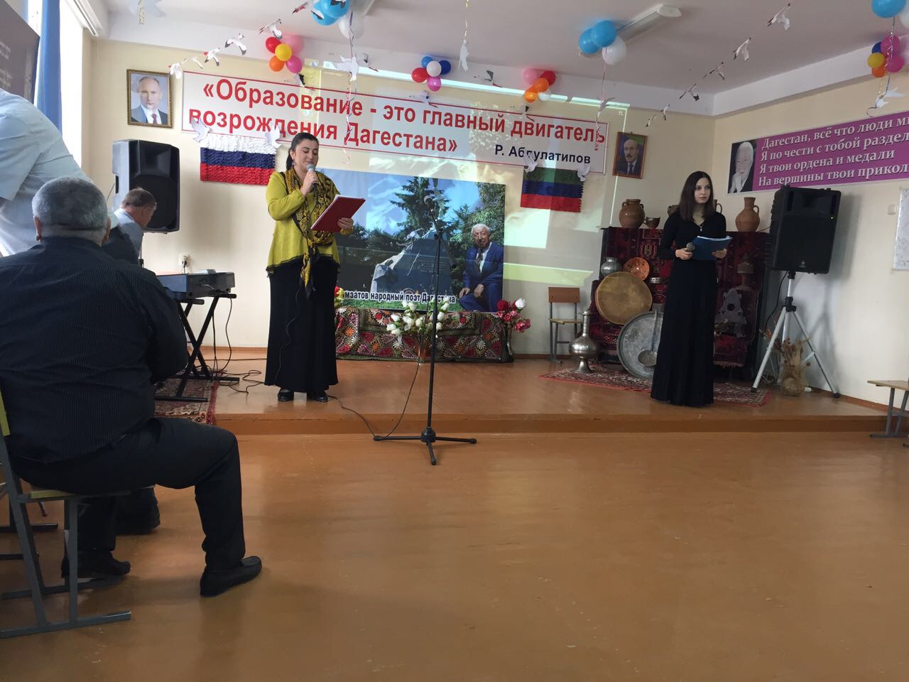 К приезду гостей руководство школы подготовили яркое приветственное выступление - песни, стихи, сценки из произведений великого поэта Дагестана Расула Гамзатова.