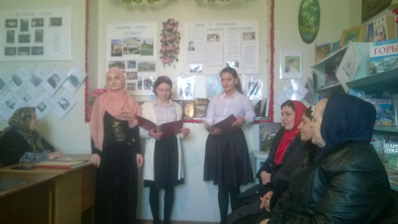 Семинар завершился показательными мероприятиями. Заведующая библиотекой с. Гельбах Эльдарова Джамиля подготовила читательский час с учениками Гельбахской СОШ Адильгереевой Меседу и Алиевой Муминат. Они рассказали о своем земляке Таймасханове Тажудине. А директор досугового центра Иразиева Суайбат провела час ислама.