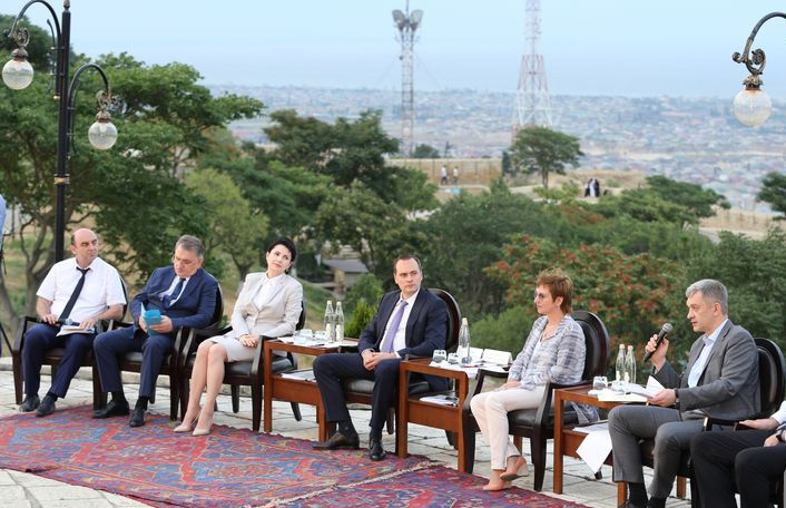 2 августа в архитектурном комплексе «Цитадель «Нарын-Кала» города Дербента состоялась пресс-конференция, посвященная завершению приема заявок на конкурс «Мой Дагестан» и началу этапа дистанционного отбора конкурса. В ней приняли участие Председатель Правительства Республики Дагестан Артем Здунов, Руководитель Администрации Главы и Правительства Республики Дагестан Владимир Иванов, заместитель руководителя блока оценочных мероприятийконкурса «Мой Дагестан» Юлия Лузанова и члены Наблюдательного совета конкурса: советник Главы РД Ильяс Мамаев, ректор Дагестанского государственного университета народного хозяйства ЯхьяБучаев, заместитель председателя Народного Собрания РД Елена Ельникова.