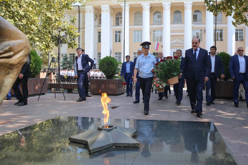 Венки также возложили и к мемориалу памяти погибших сотрудников правоохранительных органов в г. Махачкале.