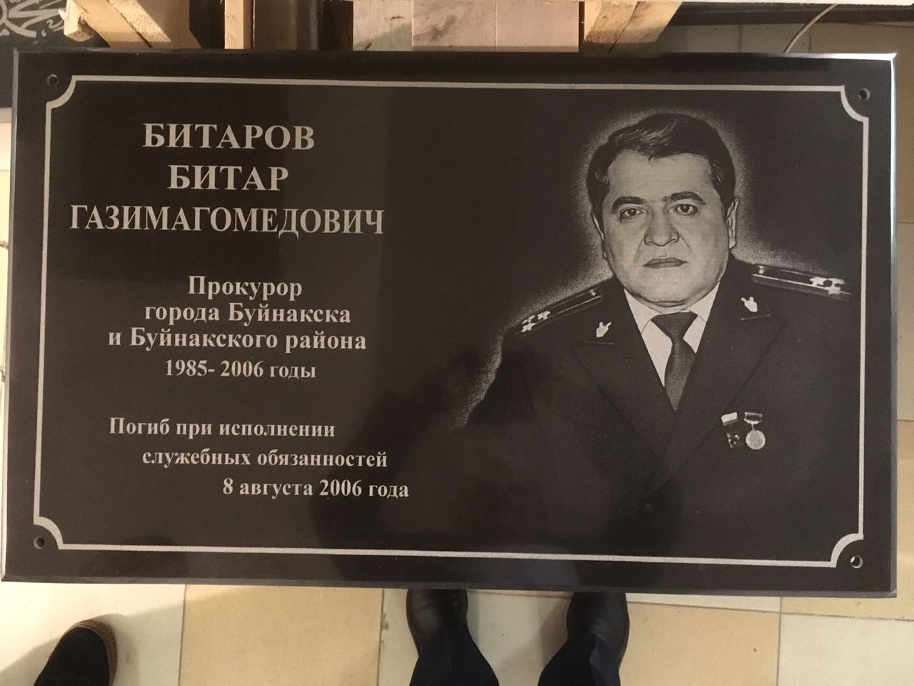 8 августа 2006 года в городе Буйнакске путем приведения бандподпольем взрывного устройства при проезде служебного автомобиля прокуратуры г.Буйнакска был убит прокурор Битаров Битар Газимагомедович, который в самом начале своей трудовой деятельности 5 лет работал старшим следователем прокуратуры г.Кизилюрта.