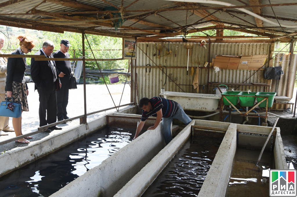 Вначале депутаты совместно с представителем регионального министерства природных ресурсов и экологии Алиасхабом Исаевым посетили КФХ «Форелевое хозяйство “Горное”», расположенное в пойме реки Сулак в районе Гельбахской ГЭС под плотиной Чирюртовского водохранилища и действующее около 10 лет.