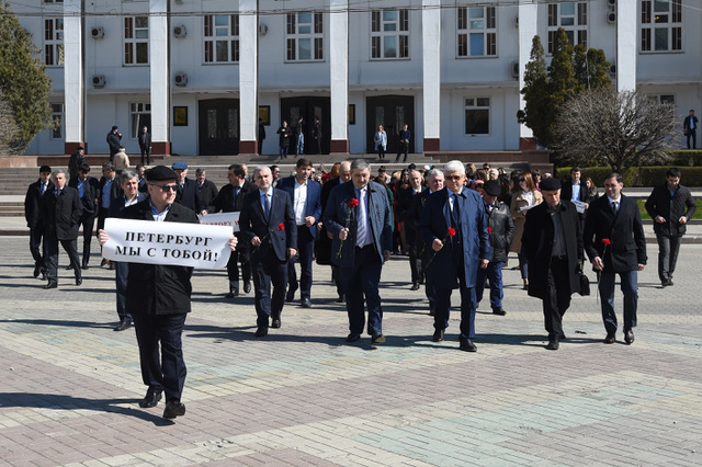 4 апреля депутаты Народного Собрания Республики Дагестан, работники Аппарата парламента и Регионального исполкома Партии «Единая Россия» провели митинг на центральной площади города Махачкалы, на котором высказали свое отношение к террористическому акту, произошедшему в метро Санкт-Петербурга