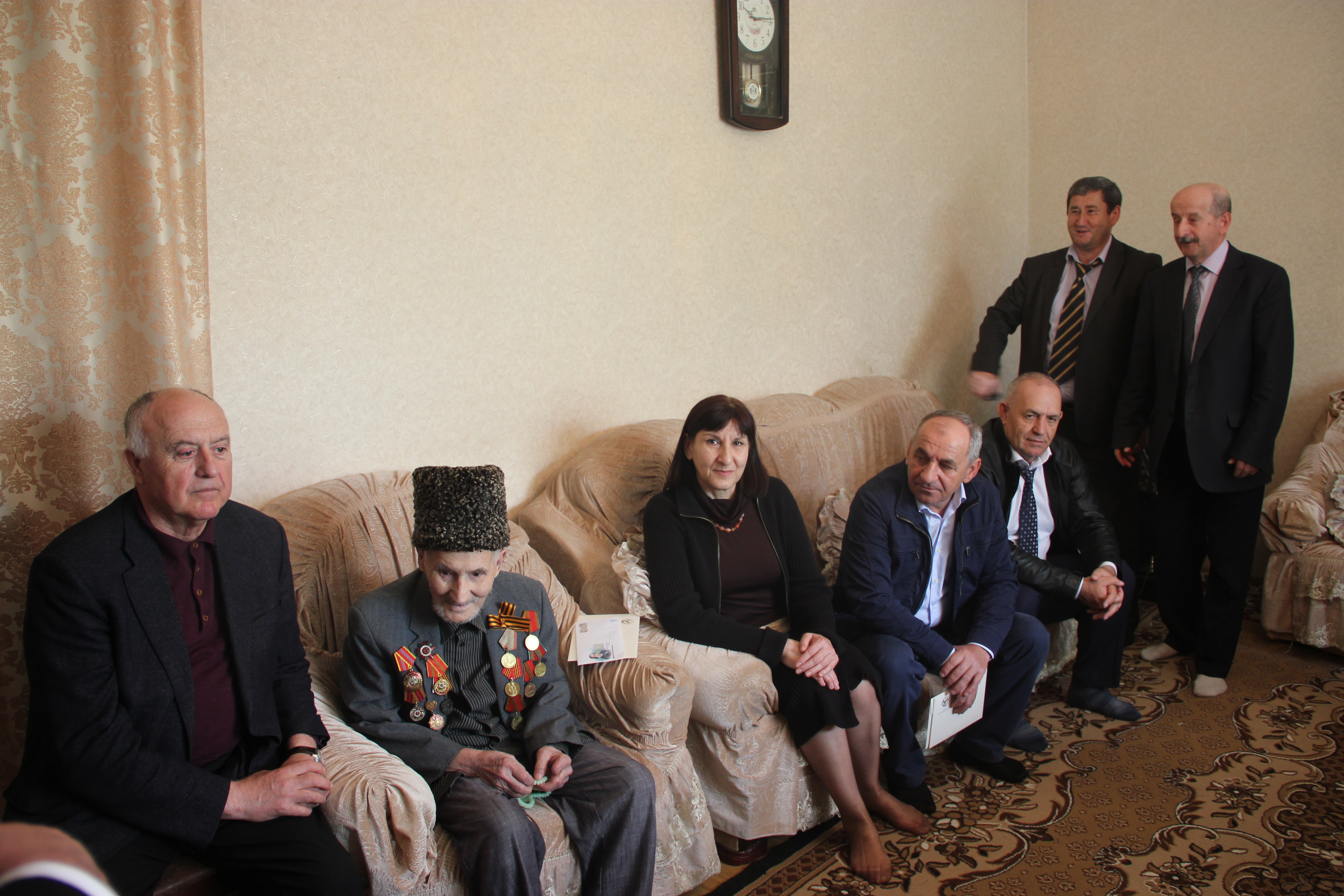 Ветераны с радостью приняли гостей, общались со всеми, шутили, несмотря на годы и болезнь. Так, например, Дада Абдурахманов, житель селения Султанянгиюрт, 1916 года рождения, удостоенный ордена Отечественной войны, и медалей «За боевые заслуги» и «За отвагу», предложил гостям «сталинские 100 грамм», Муцалхан Мацалханов,1924 года рождения, житель села Султанянгиюрт, имеющий орден Отечественной войны 2 степени, медали «За боевые заслуги» и «За отвагу», рассказал историю о том, как вместе с молдаванином спас будущего первого секретаря кизилюртовского горкома КПСС Магомедхана Малагусейнова. Шарип Шабанов, 1925 года рождения, житель села Комсомольское, пожелал всем мирного неба над головой.
