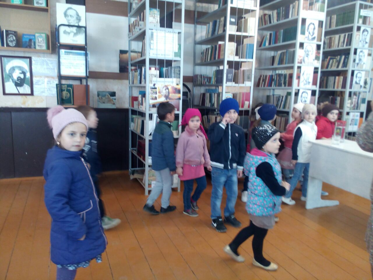 Дети пришли с воспитателем Джахбаровой Асият. Заведующая библиотекой Магомедова Майсарат рассказала им, как искать нужную книгу в библиотеке.