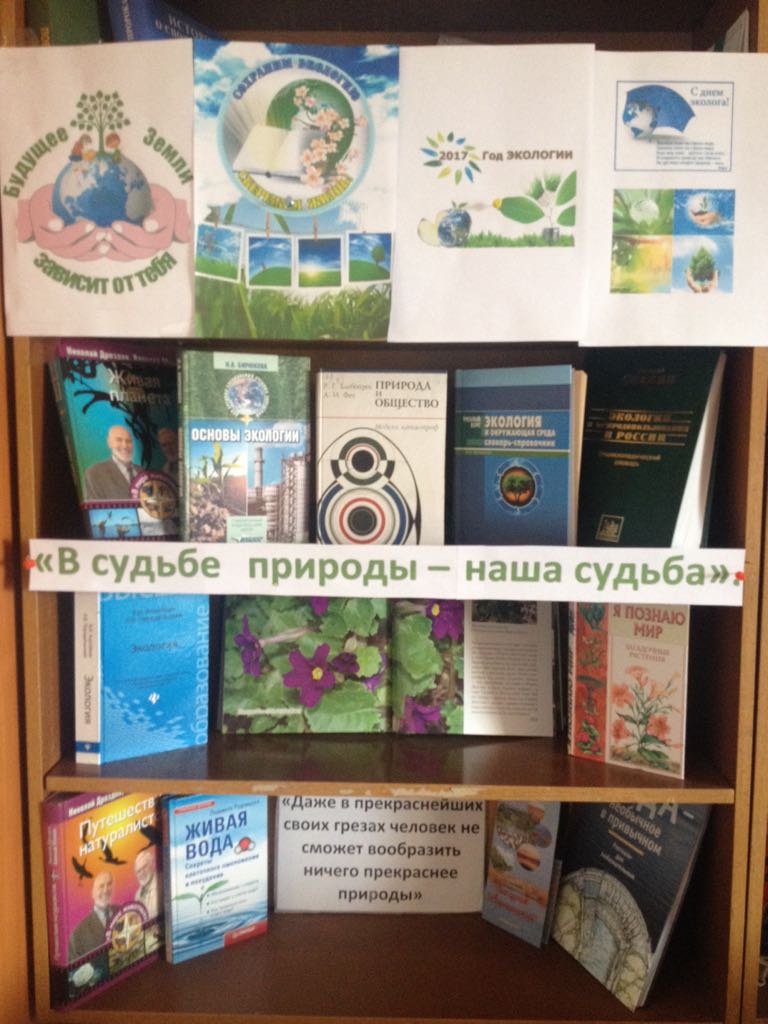30 июня в читальном зале районной централизованной библиотеки был проведен информационный час и была оформлена книжная выставка «В судьбе природы – наша судьба», приуроченные к Году экологии.