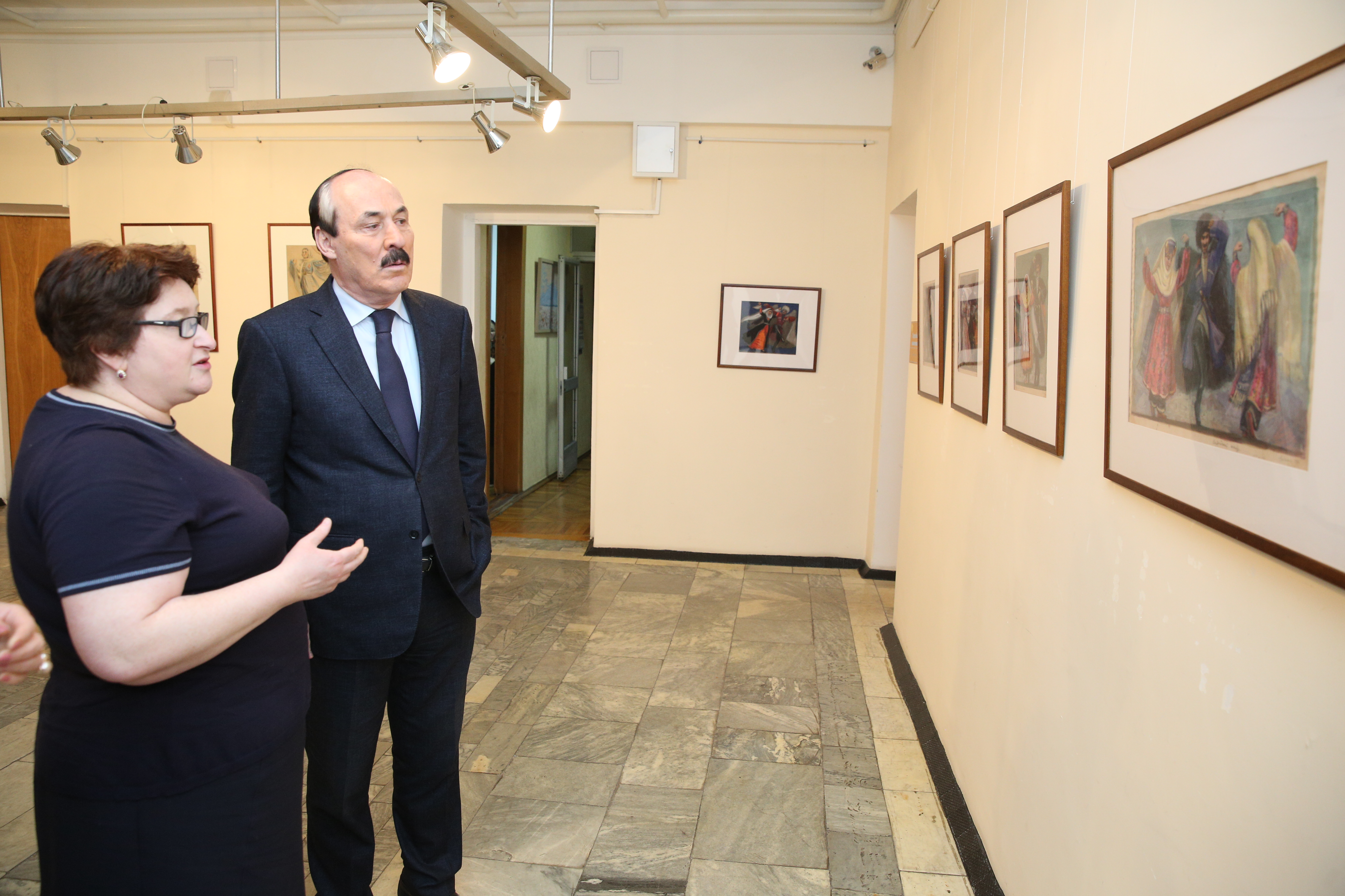 Осмотрев произведения мастера, в том числе портреты, серию акварелей и черно-белых рисунков, а также работы, запечатлевшие красоту и самобытность дагестанских национальных костюмов, Рамазан Абдулатипов выразил восхищение талантом художника.
