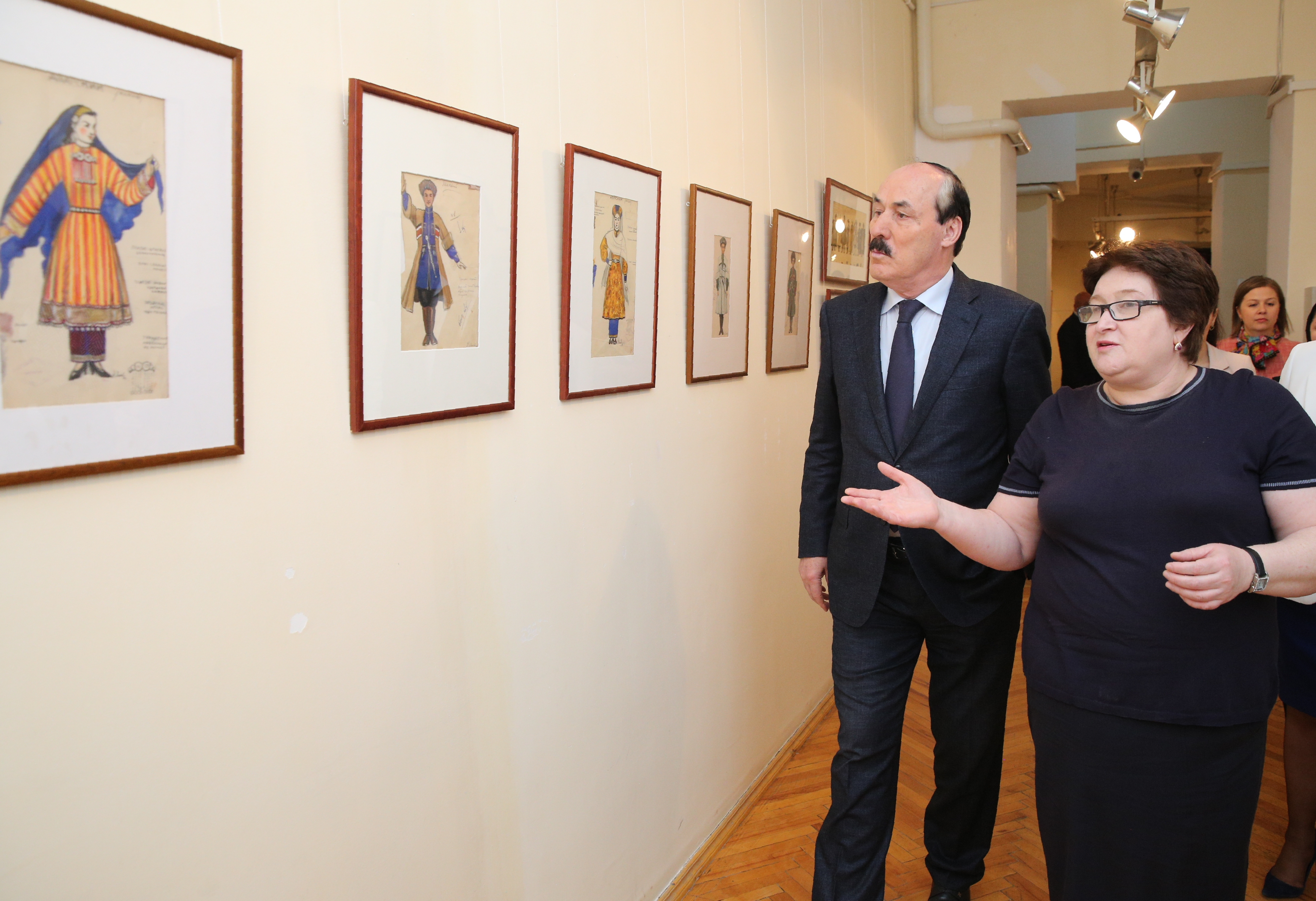 В сопровождении министра культуры РД Заремы Бутаевой и директора музея Салихат Гамзатовой руководитель региона осмотрел выставку работ российского художника Николая Лакова.