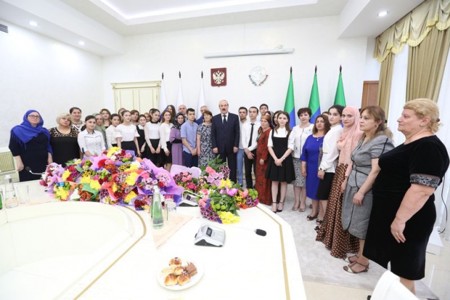 30 июня Глава Дагестана Рамазан Абдулатипов встретился с выпускниками 2017 года, набравшими сто баллов по результатам ЕГЭ, с их учителями и классными руководителями, сообщило РИА «Дагестан» с ссылкой на пресс-службу Администрации Главы и Правительства РД.