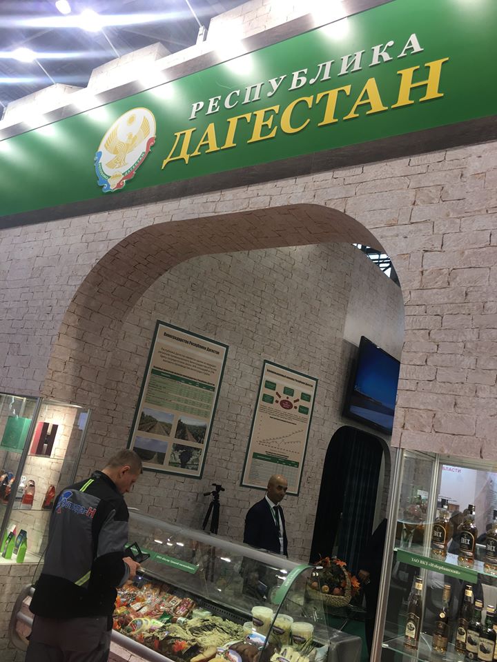 В 75-ом павильоне ВДНХ все регионы России установили павильоны с учетом региональных и этнических дизайнерских исполнений и заполнили полки своей сельскохозпродукцией. Особо смотрится стенд «Страны гор», выполненный в форме Башни-сакли, заполненный национальными продуктами.