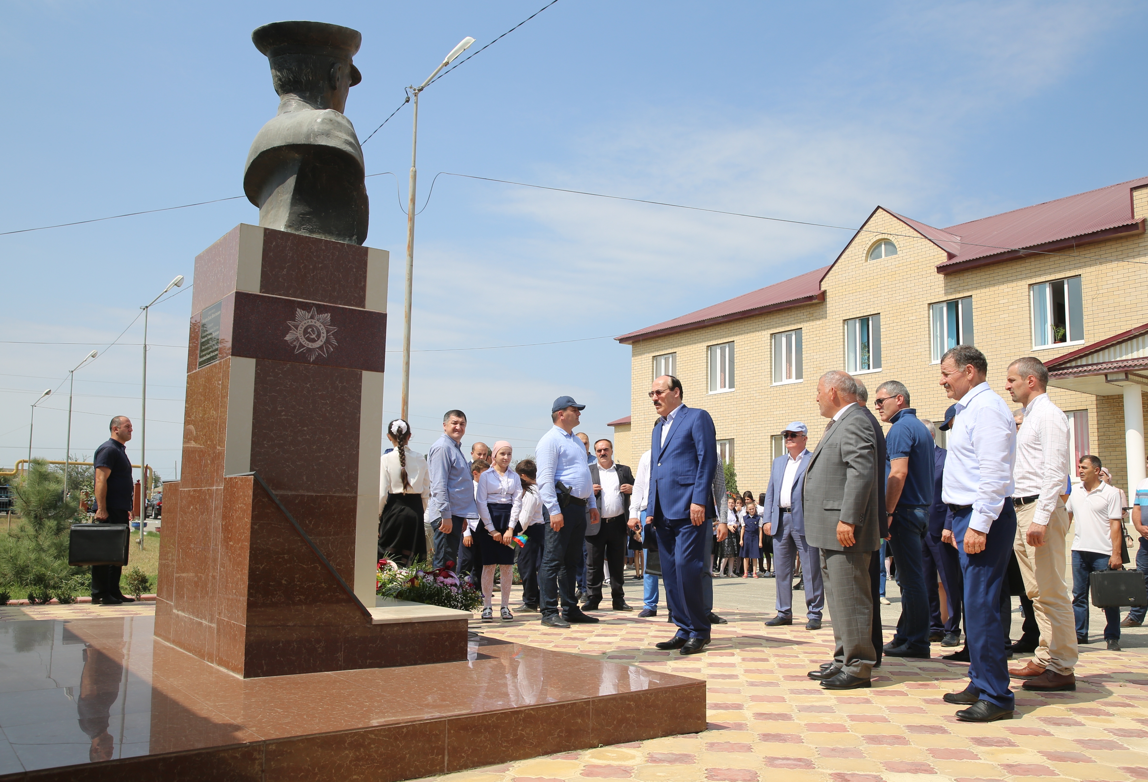 Участники торжественного сбора возложили венки к мемориалу Героя Советского Союза Гаджи Буганова, именем которого названа школа.