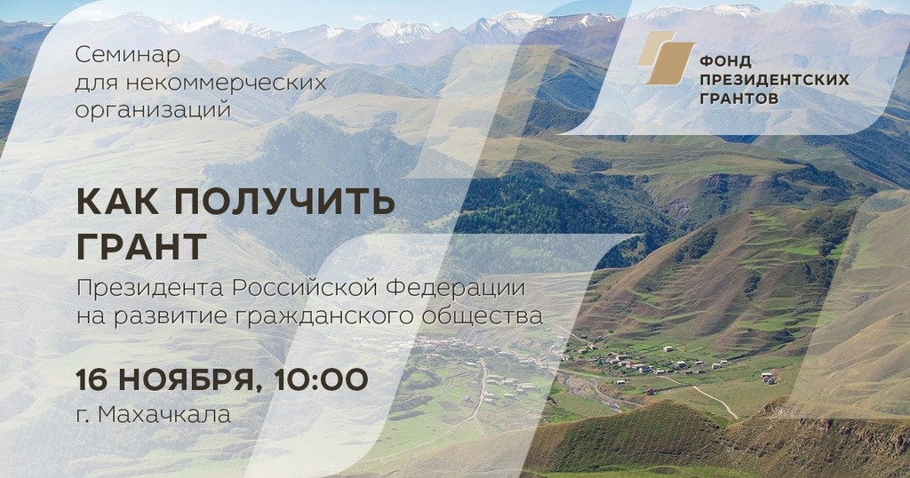 Семинар-практикум пройдет 16 ноября в 10:00 в городе Махачкале с участием советника генерального директора Фонда президентских грантов Владимира Татаринова.