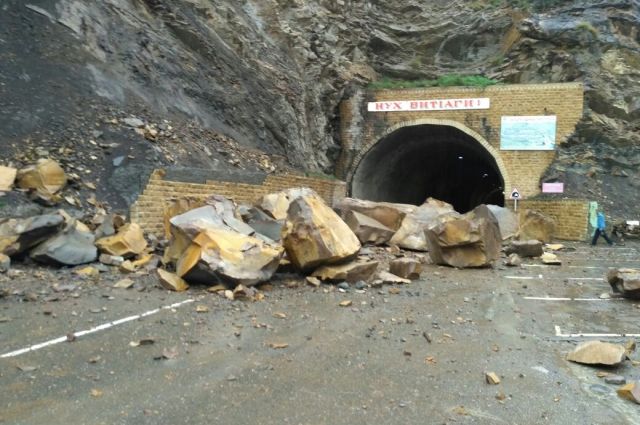 «Огромные камни упали на дорогу у въезда в тоннель. В результате происшествия никто не пострадал. Движение на участке временно затруднено», - пишет газета «Новое дело».