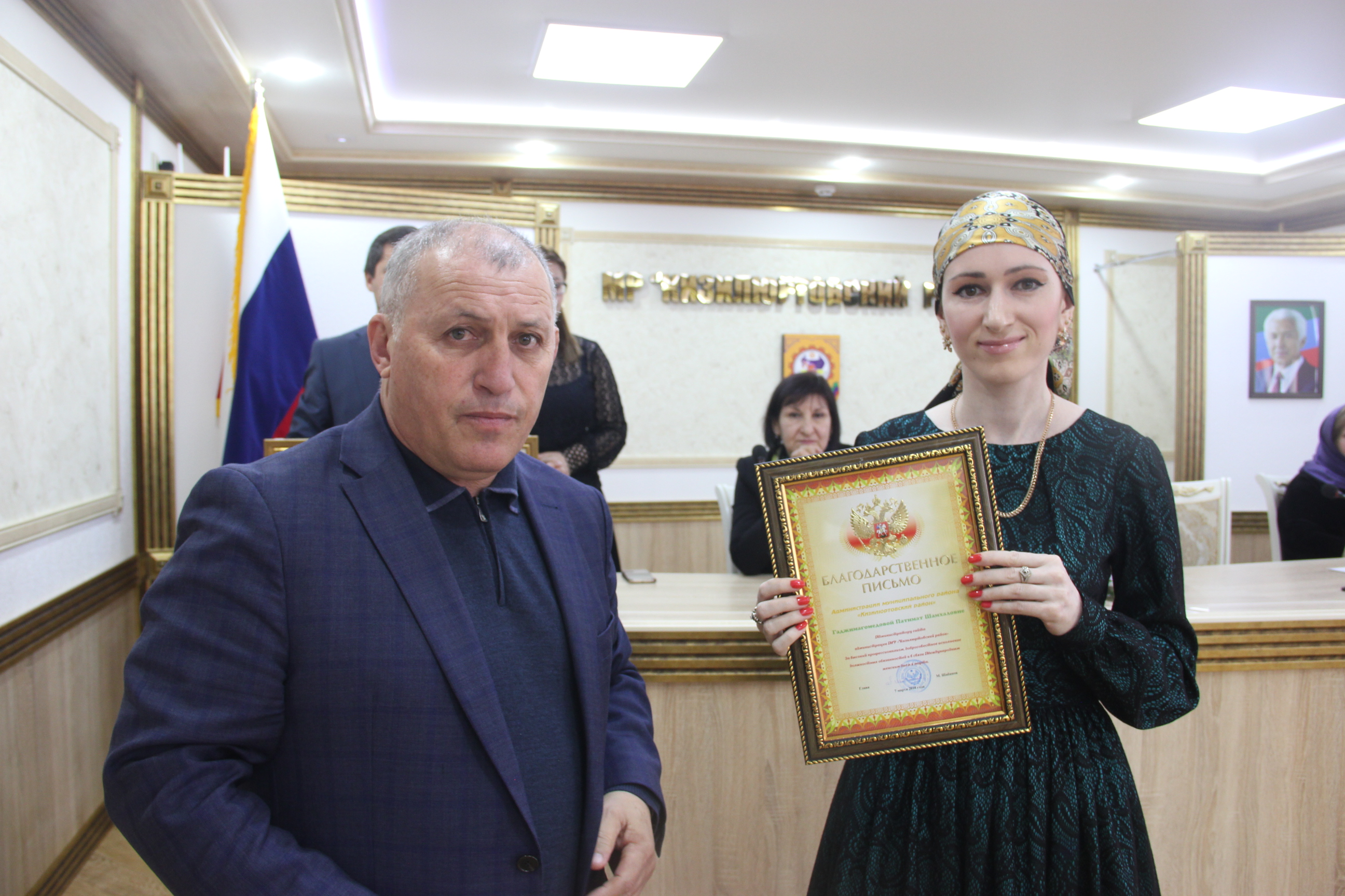 Благодарственными письмами администрации Кизилюртовского района за многолетний и добросовестный труд, высокий профессионализм, инициативу и в связи с Международным женским днем 8 марта награждены главный специалист УСХ инвестиции и развития малого и среднего предпринимательства Умганат Абдулкадырова, учительница родного языка и литературы Султанянгиюртовской СОШ №1 Ума Шихабудинова, начальник отдела социальной политики, опеки и попечительства Патимат Шугаибова, директор социально – реабилитационного Центра для несовершеннолетних Кизилюртовского района Кальцум Мирзаалиева, начальники отделов экономики и прогнозирования Марьям Алиева, ЗАГС Зумрат Мусаева, архивного отдела Лаура Магомедова, заместитель начальника архивного отдела Аминат Мирзоева, главный специалист Управления делами администрации Заира Максудова, ведущий специалист правового отдела Саида Хизриева, главные специалисты отдела культуры, физической культуры и спорта, туризма и молодежной политики администрации Лаура Зайналова и Патимат Джамалудинова, начальник и главный бухгалтер финансового управления Шамай Магомедова и Эмеева Патимат, главный специалист отдела архитектуры, земельных и имущественных отношений Саихат Хизбулаева, главная медсестра Кизилюртовской центральной больницы Патимат Магомедова, главный врач участковой больницы селения Зубутли – Миатли Расият Магомедова, начальник абонентского отдела МУП «Благоустройство» Кабират Зиявудинова, директор Кизилюртовской межпоселенческой централизованной библиотечной системы администрации Марина Зубайриева, заместитель начальника по методической работе и методист Управления образования Сабина Мульдарова и Аминат Эмеева, бухгалтер МКУ «Централизованная бухгалтерия» Елена Гасанова и администратор сайта администрации Кизилюртовского района Патимат Гаджимагомедова.