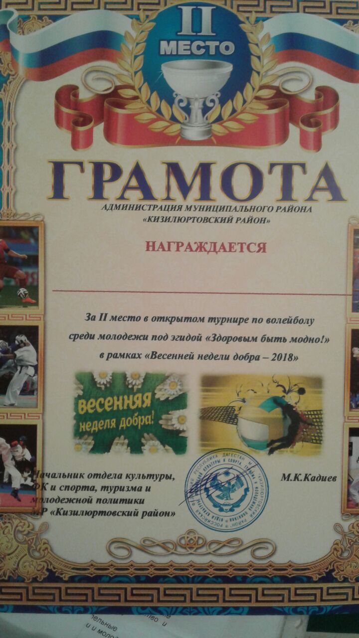 День 23 апреля у волонтеров Кизилюртовского района начался с подготовки спортивной акции «Здоровым быть модно». В Комсомольской СОШ был объявлен открытый турнир по волейболу.