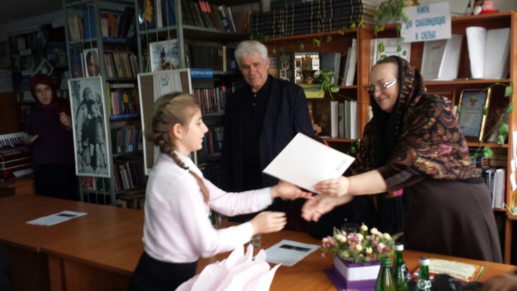 В заключение мероприятия директор РЦБ вручила грамоты и подарки учащимся Гадаринской СОШ – среди них Магомедова Айшат, Мансурова Сафият, Халидова Патимат, Батырмурзаева Патимат, Магомедова Замира, Сайбулаева Патимат.