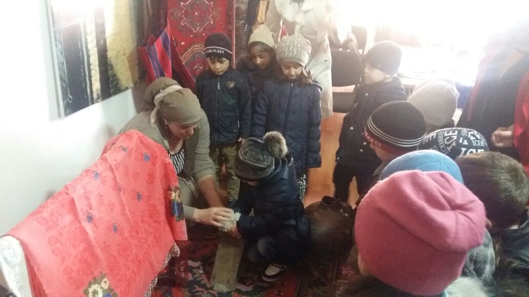 Работники Центра наглядно им представили выставку старинной одежды, бытовой утвари, предметов обихода, ковров, сельхозорудий.