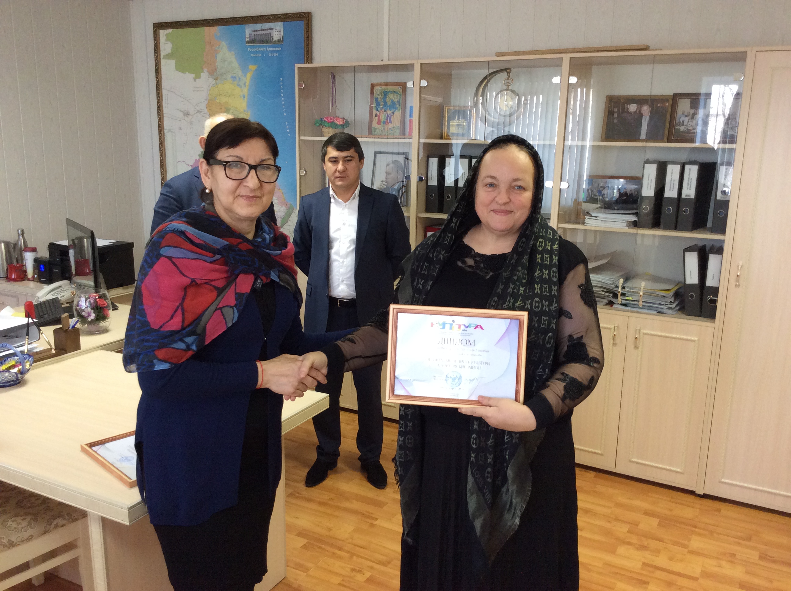 Вручили дипломы первый заместитель главы администрации Кизилюртовского района Мадина Алисултанова и заместитель главы администрации района Ибрагим Муталибов. Они выразили признательность руководителю Центра Марине Зубайриевой за вклад в сохранение и развитие культуры района, ее популяризацию.