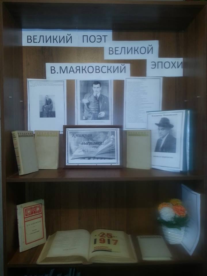 19 июля заведующая библиотекой селения Стальское Мадина Алиева оформила книжную выставку, посвященную дню рождения русского поэта Владимира Маяковского.