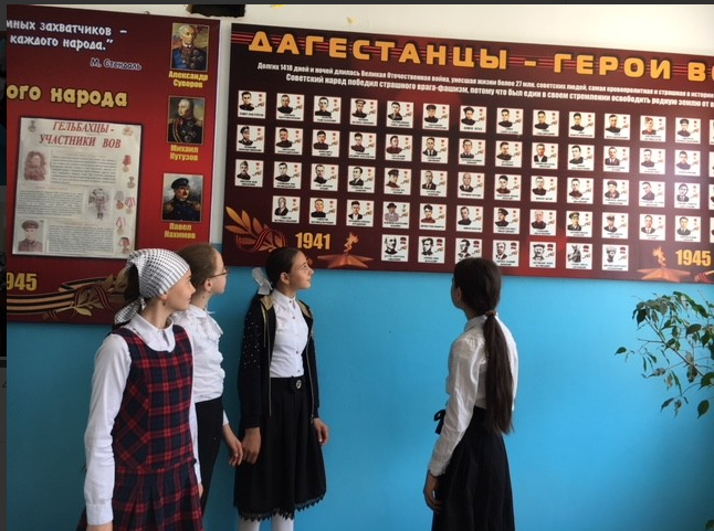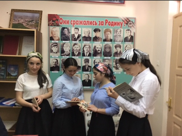 22 мая библиотекарем школы Х. Мусаевой был проведен библиотечный час в 8-9 классах на тему «Дагестанцы – Герои России». Библиотекарь рассказала ребятам о дагестанцах – Героях России, защищавших Отечество на полях сражений, чьи имена навечно вписаны в историю страны, о совершенных ими подвигах.
