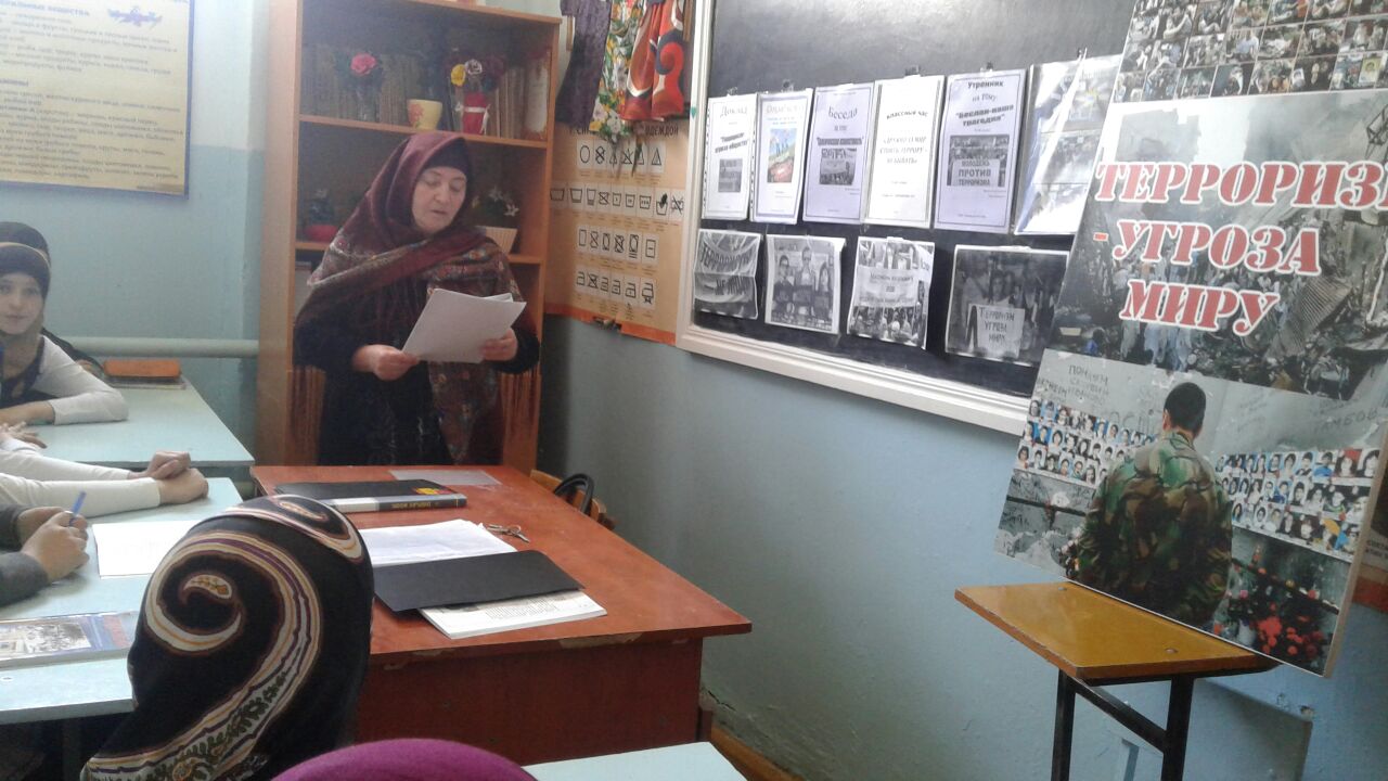 29 марта в селении Кироваул заведующая библиотекой Мукумагомедова Париза провела беседу среди жителей села на антитеррористическую тему.