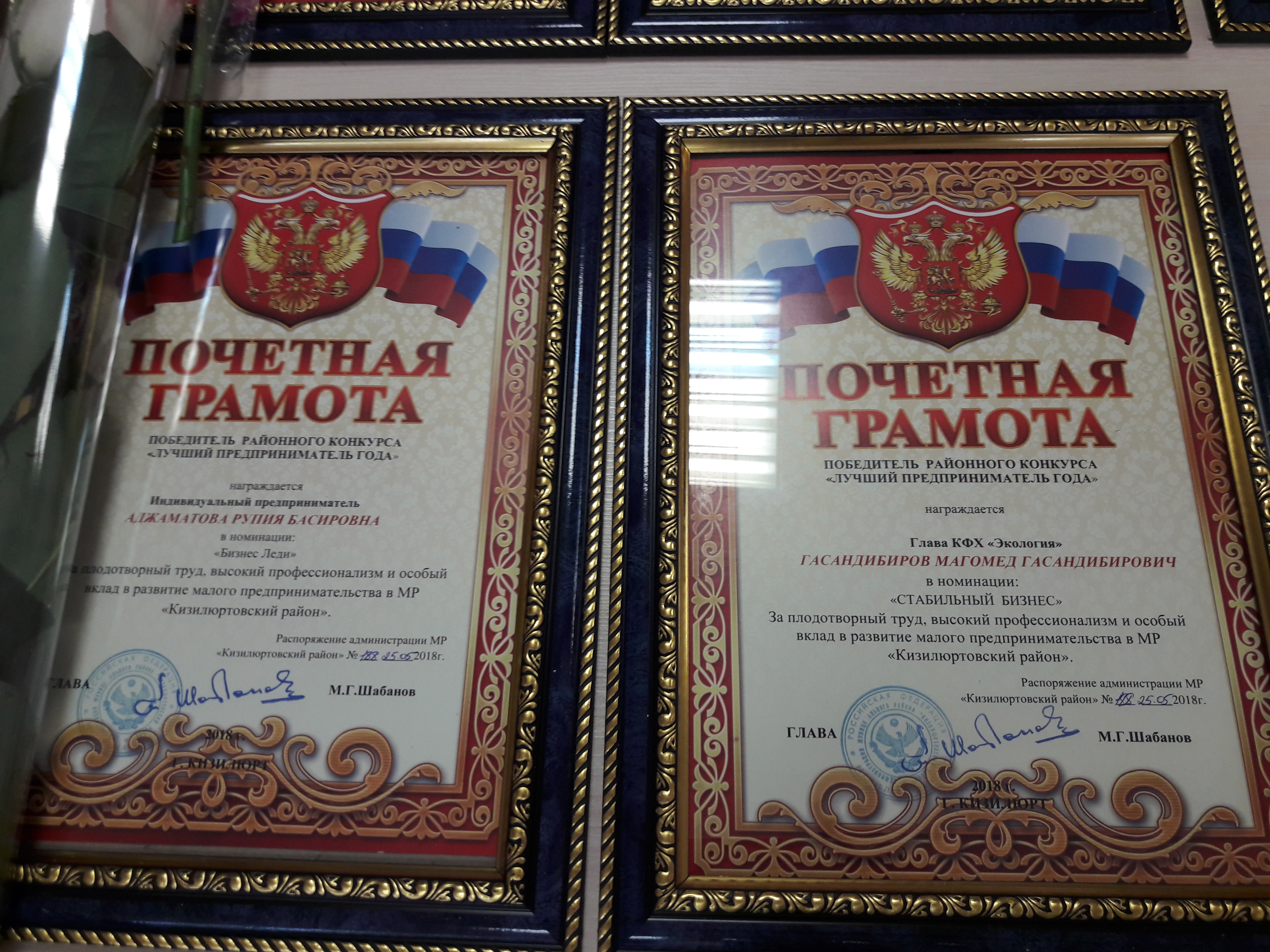 Напомним, что организация и проведение конкурса осуществлялись в соответствии с постановлением администрации МР «Кизилюртовский район» №62 от 17.05.2018 года «О ежегодном районном конкурсе «Лучший предприниматель года» накануне Дня российского предпринимательства, который отмечался 26 мая. Критериями определения победителей согласно правилам конкурса были среди прочих и отсутствие задолженности перед бюджетом и государственными внебюджетными фондами, создание рабочих мест, своевременная выплата среднемесячной заработной платы работникам.