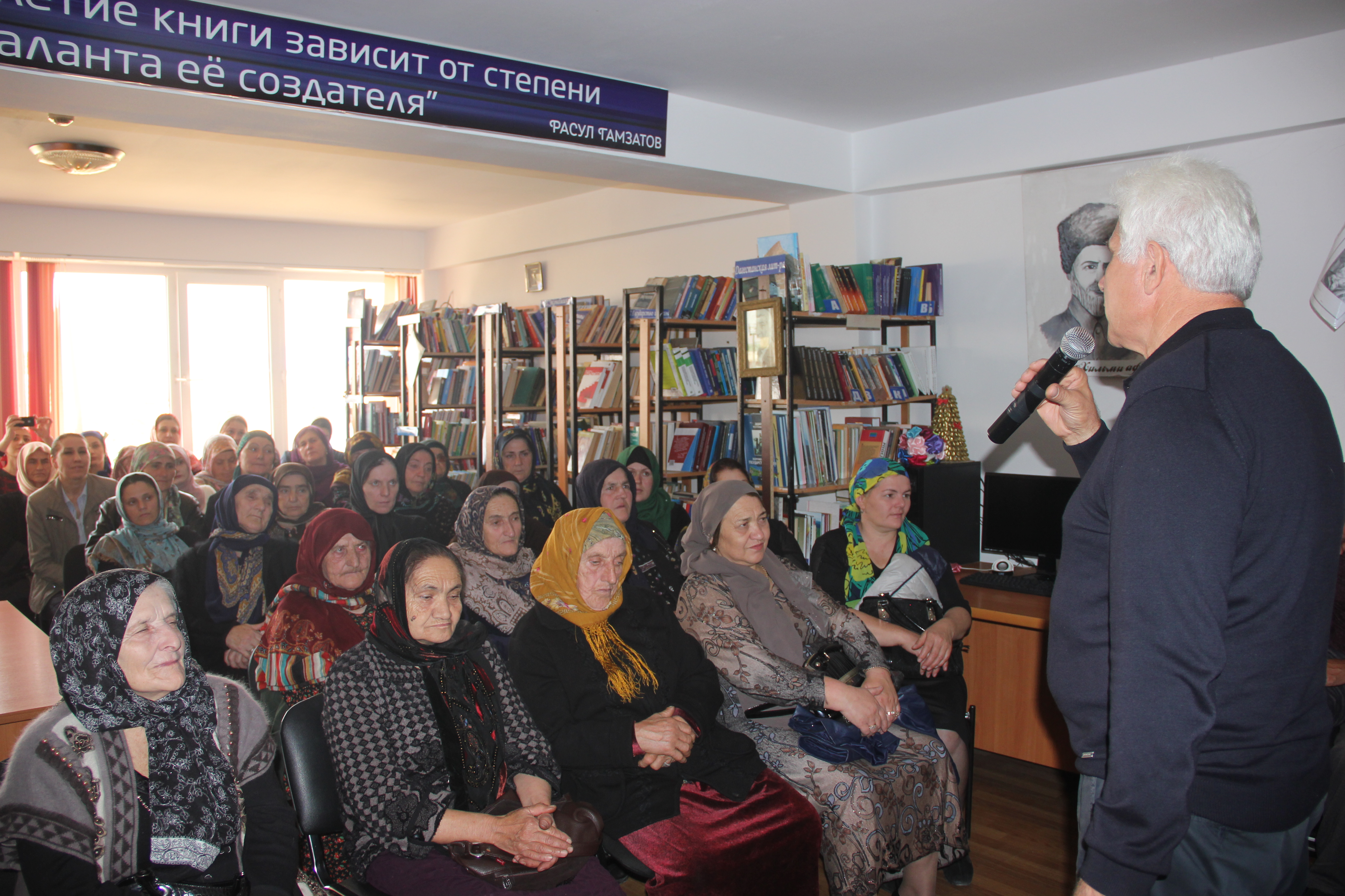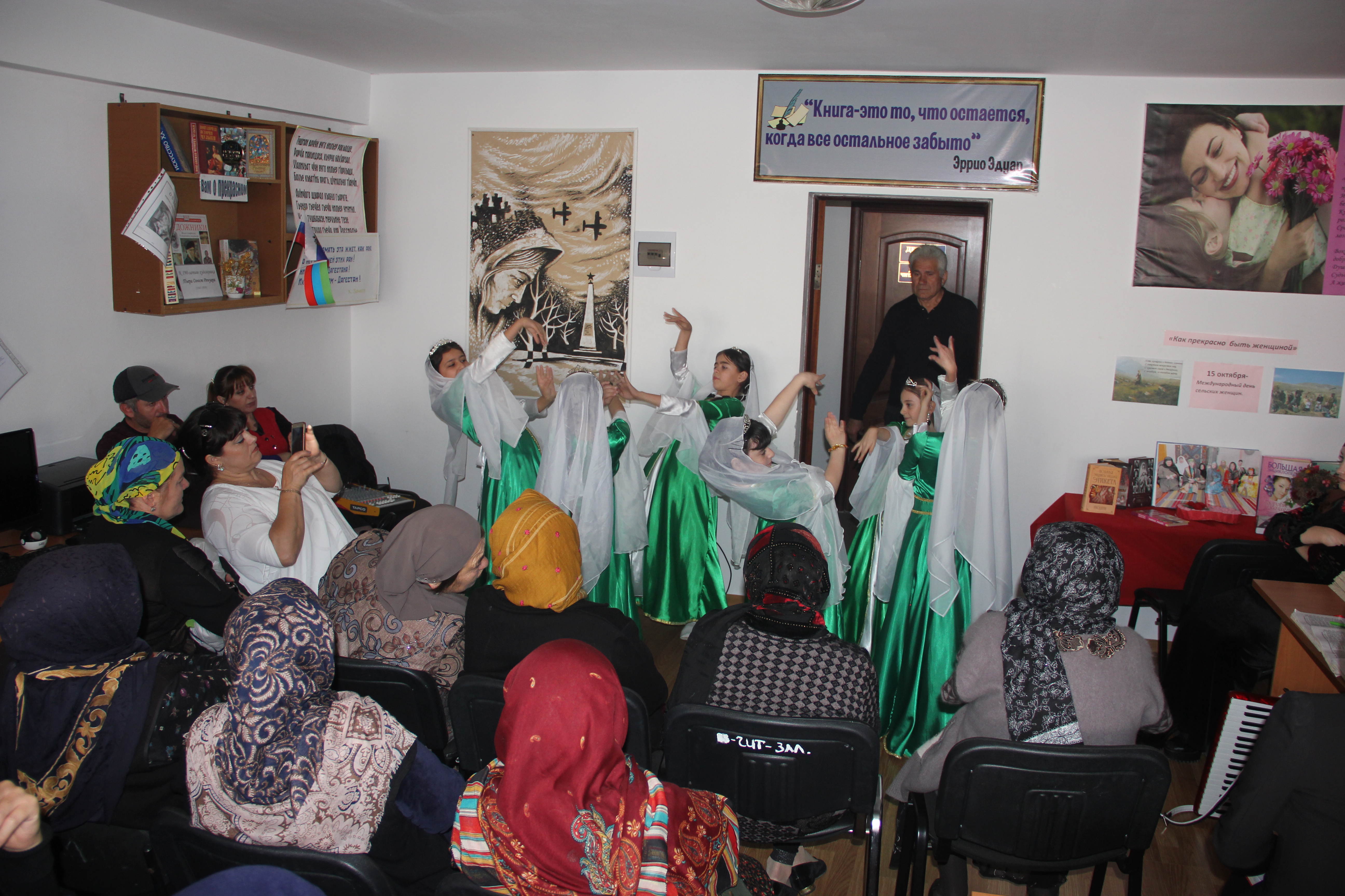 В подарок сельским женщинам Каримула прочитал балладу о женщине Расула Гамзатова и под аккордеон спел патриотическую песню. Мероприятие продолжил нежный восточный танец в исполнении хореографического ансамбля танца «Хадум» из селения Зубутли-Миатли под руководством Салимат Шехвалиевой.