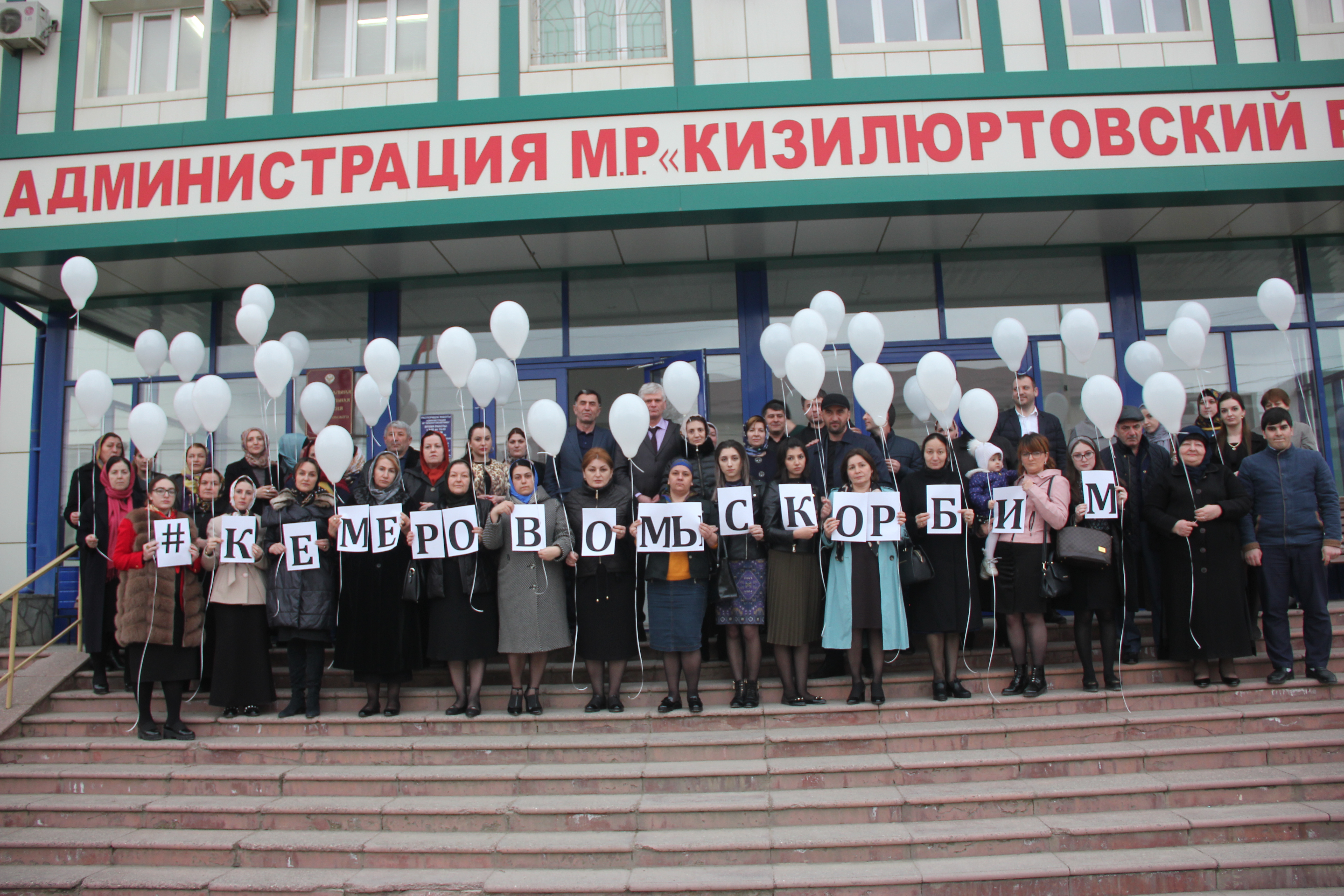 28 марта, в день общенационального траура, во двор здания администрации Кизилюртовского района на минуту молчания вышли все желающие, чтобы выразить свою скорбь и боль в память о погибших в страшной трагедии в Кемерово.