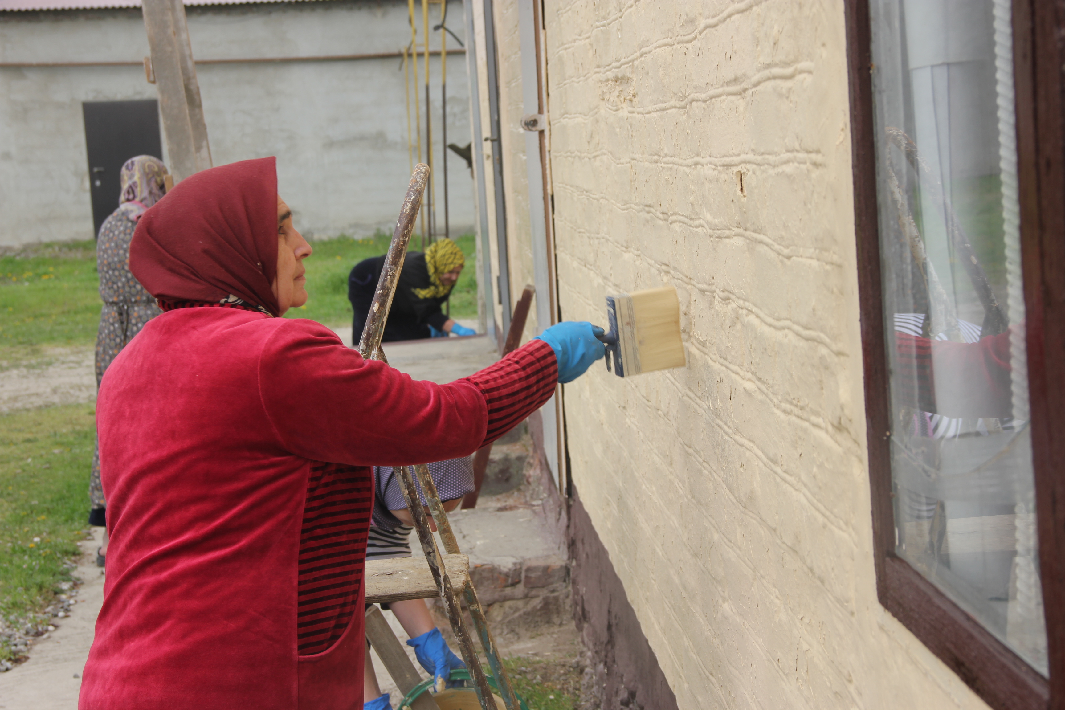 А вот группа женщин, состоящая из социальных работников, дружно красила здание администрации села Миатли. Главой села уже заранее были куплены краски, щетки, перчатки и другие необходимые предметы для уборки и ремонтных работ.