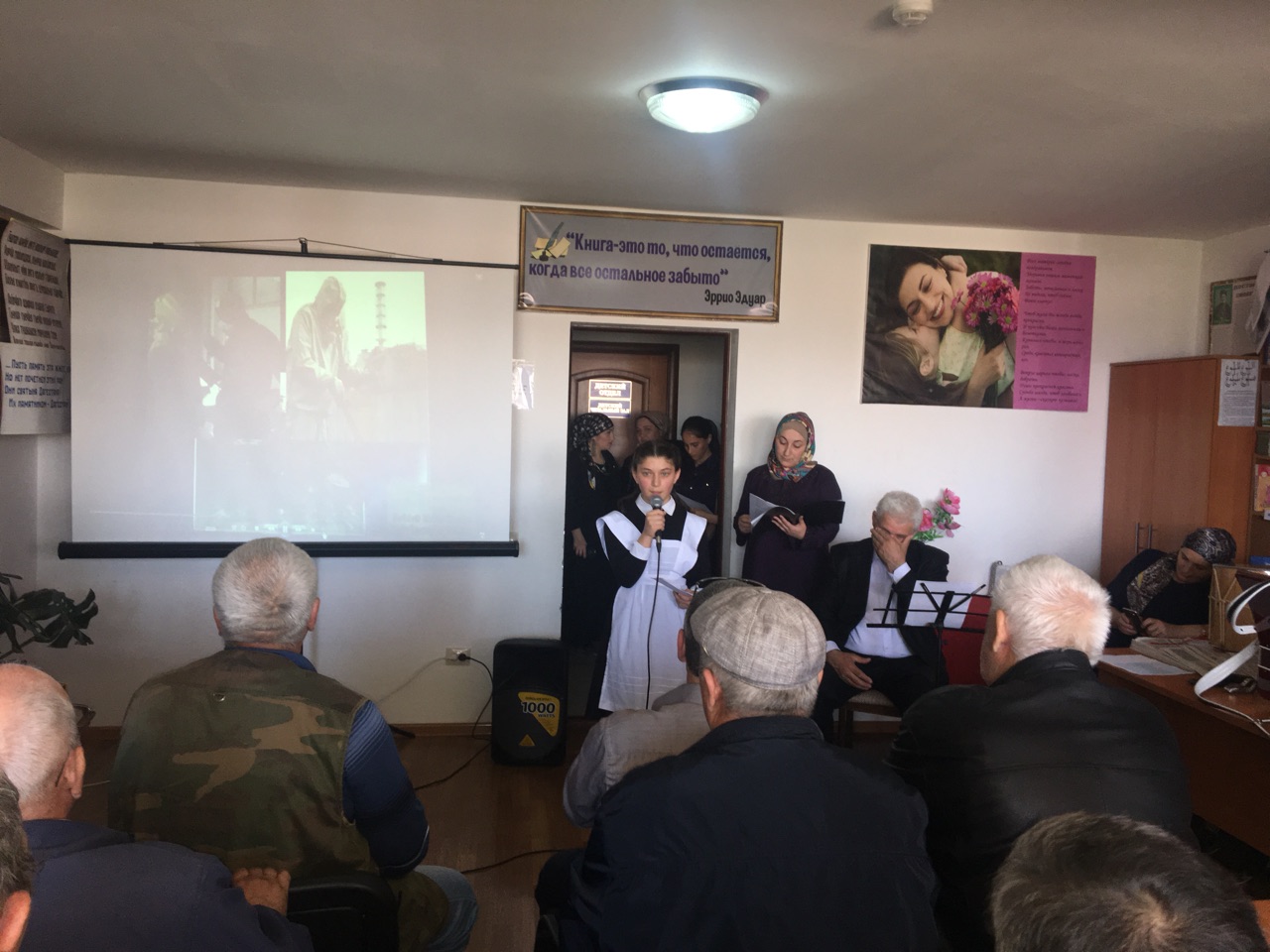 Ведущая мероприятия, библиотекарь детского читального зала Айшат Насрулаева напомнила хронику событий 1986 года. Была подготовлена видеопрезентация с ужасающими картинами и фактами с места события. Учащиеся школ района выразили свою детскую скорбь. Асият Мусаева и Зарема Алимирзаева из Зубутли - Миатлинской СОШ, Амина Мусабекова и Машидат Алиева из Стальской гимназии прочитали стихи, посвященные трагической дате.
